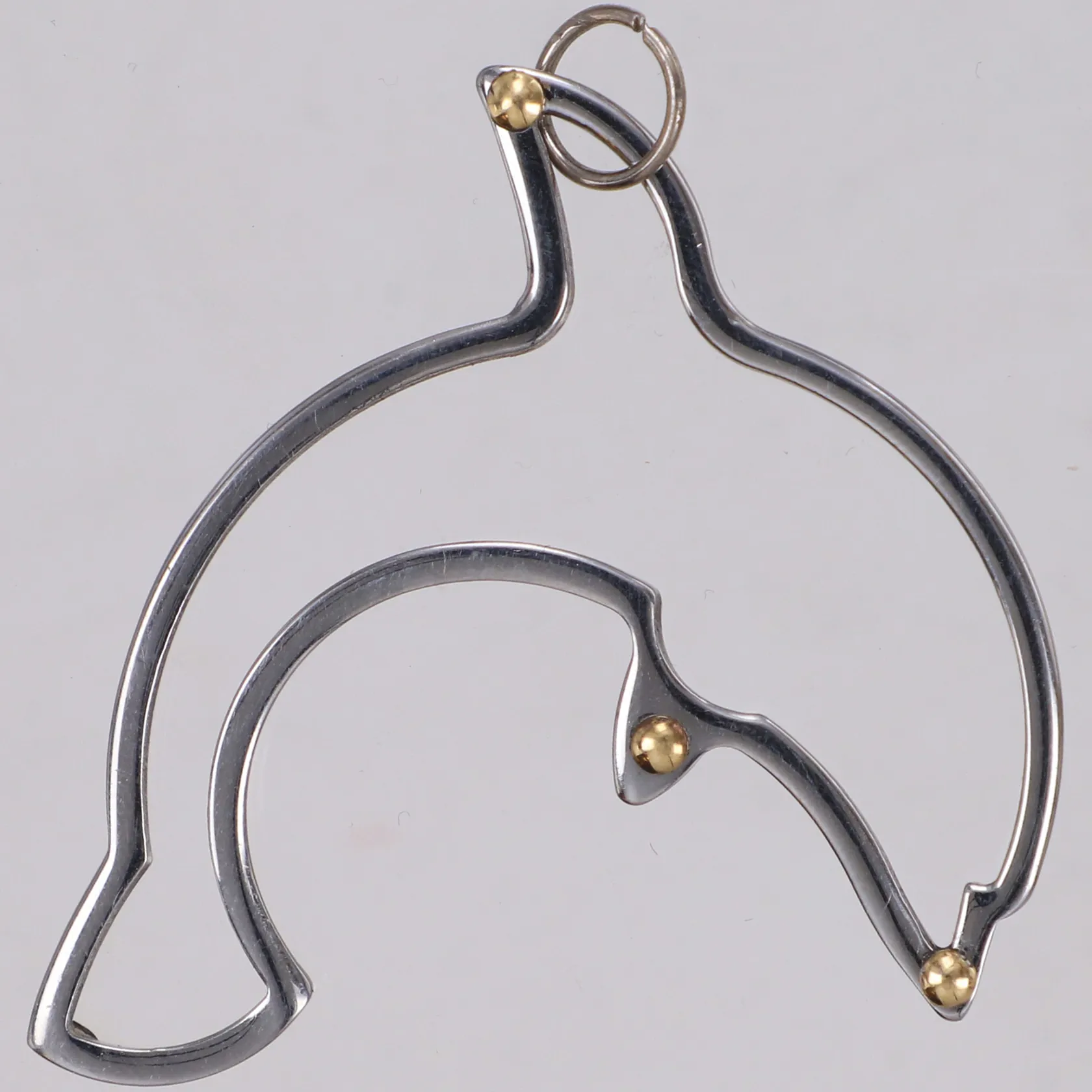 Hänge delfin, längd 50,2mm, bredd 47,8mm, vitmetall med detaljer i 18K Vikt: 4,4 g.
