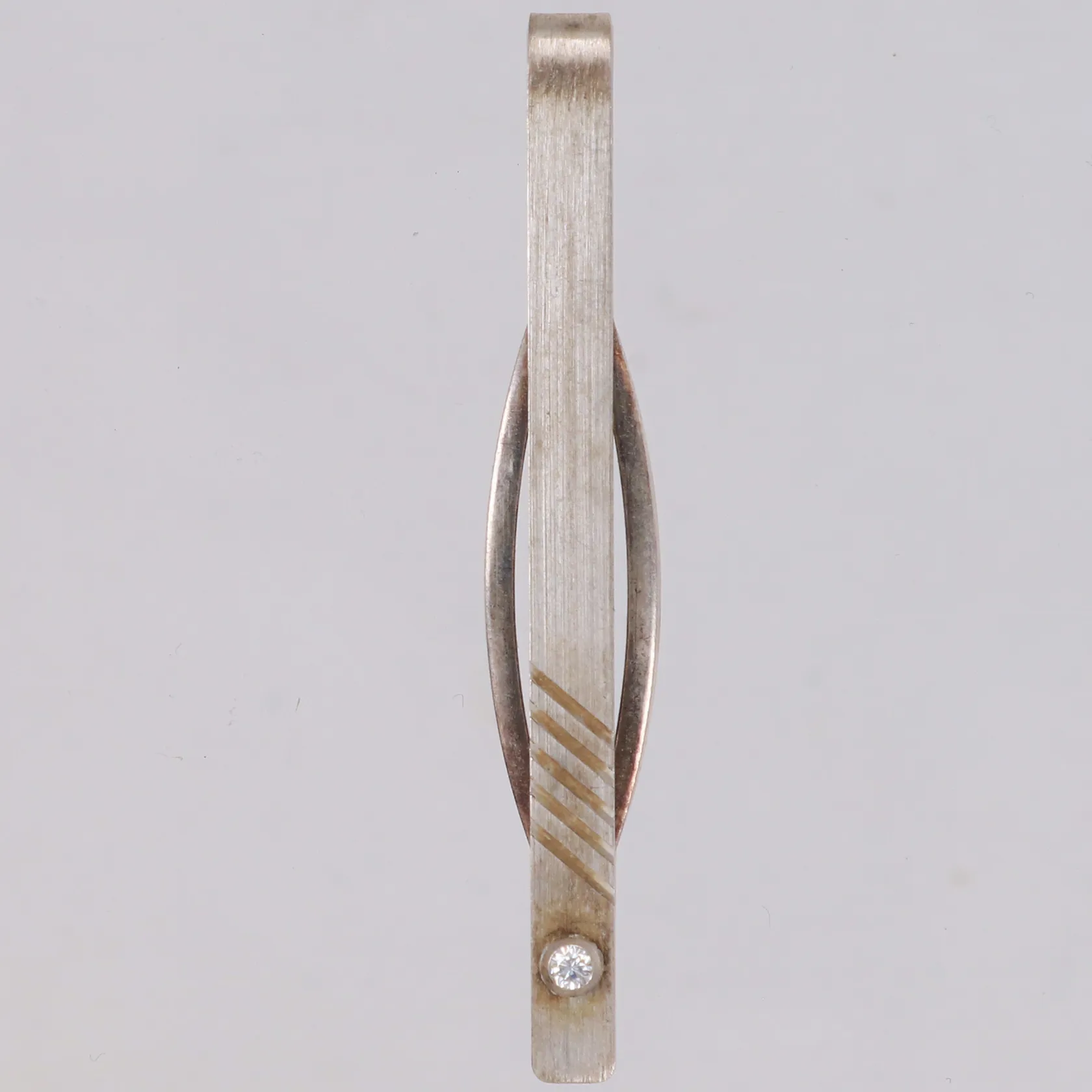 Slipshållare med vit sten, längd 55mm, silver 925/1000 Vikt: 5 g.