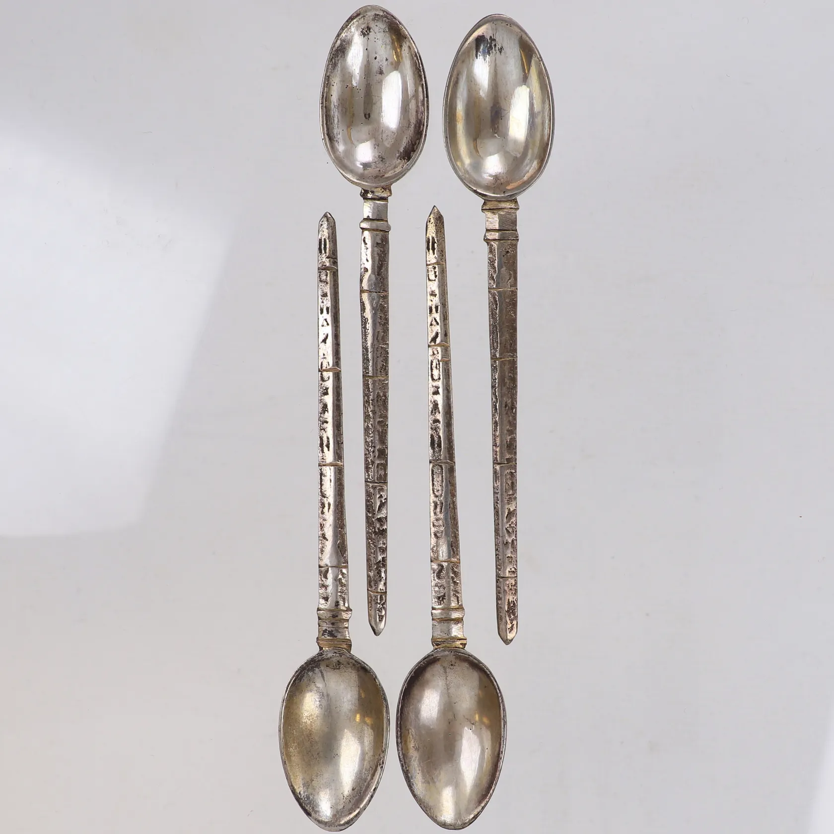 4 Skedar, längd 12cm, utländska stämplar, silver Vikt: 52,1 g.