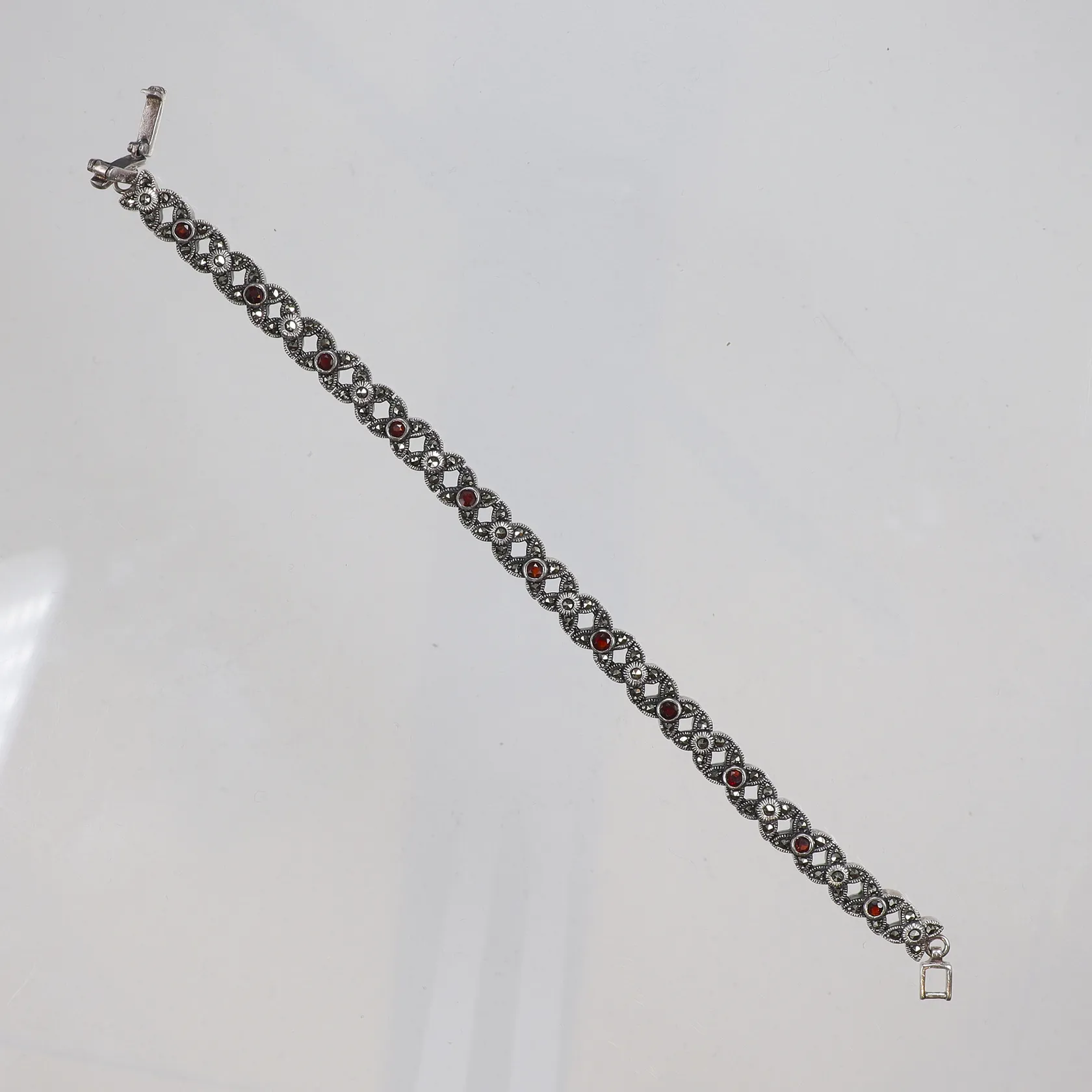 Armband med markasiter och röda stenar 19cm bredd 7mm silver 925/1000 Vikt: 23,9 g.