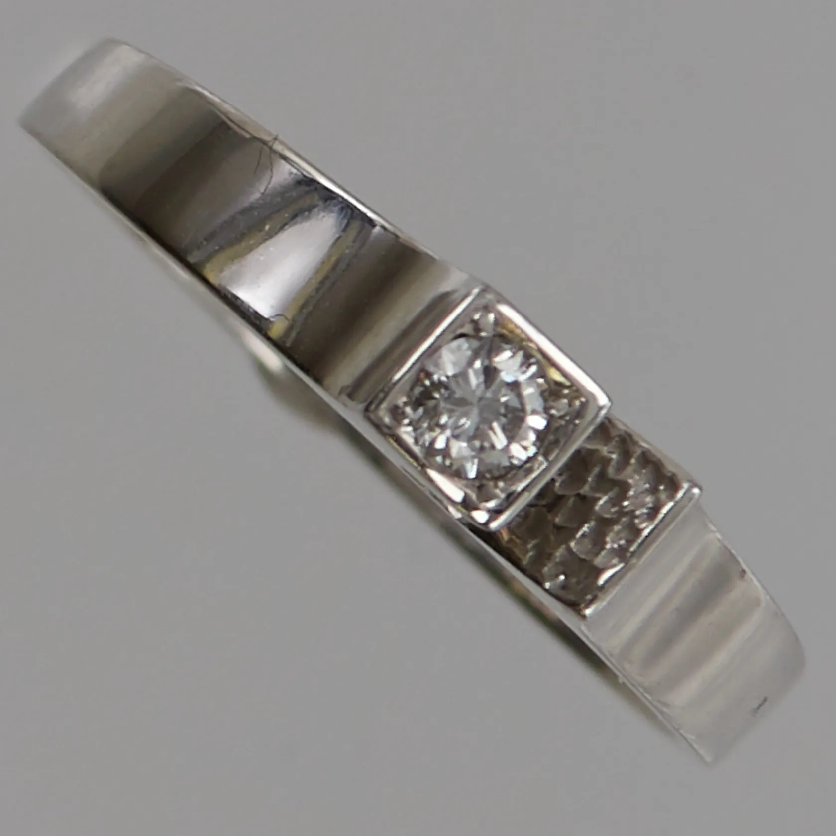 Ring diamant 0,08ct, Ø17¼, bredd:3mm, Mema Guld & Silver Ab 1975, vitguld 18K 3,3g. Vikt: 3,3 g.