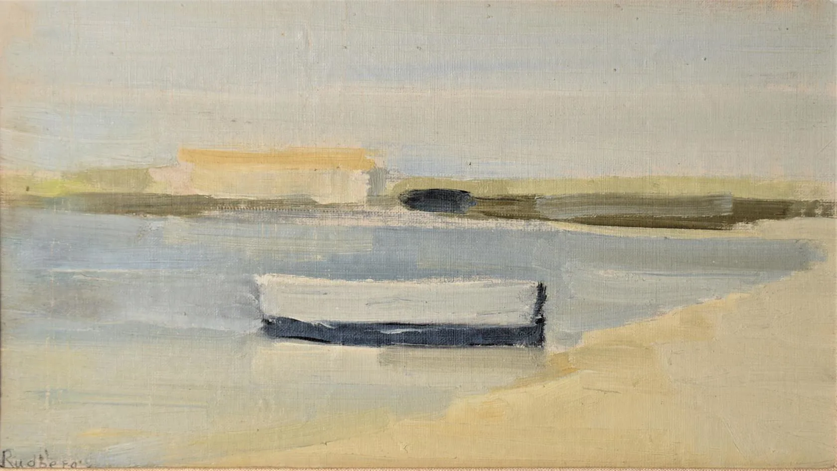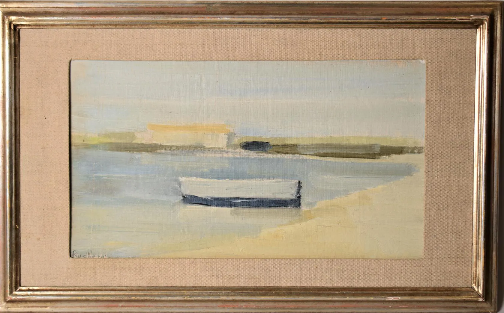 Tavla, olja på duk, signerad, Gustav Rudberg, ca 24x42cm, duk uppfodrad på pannå. Skickas med postpaket. Omfattas av BUS-avgift.