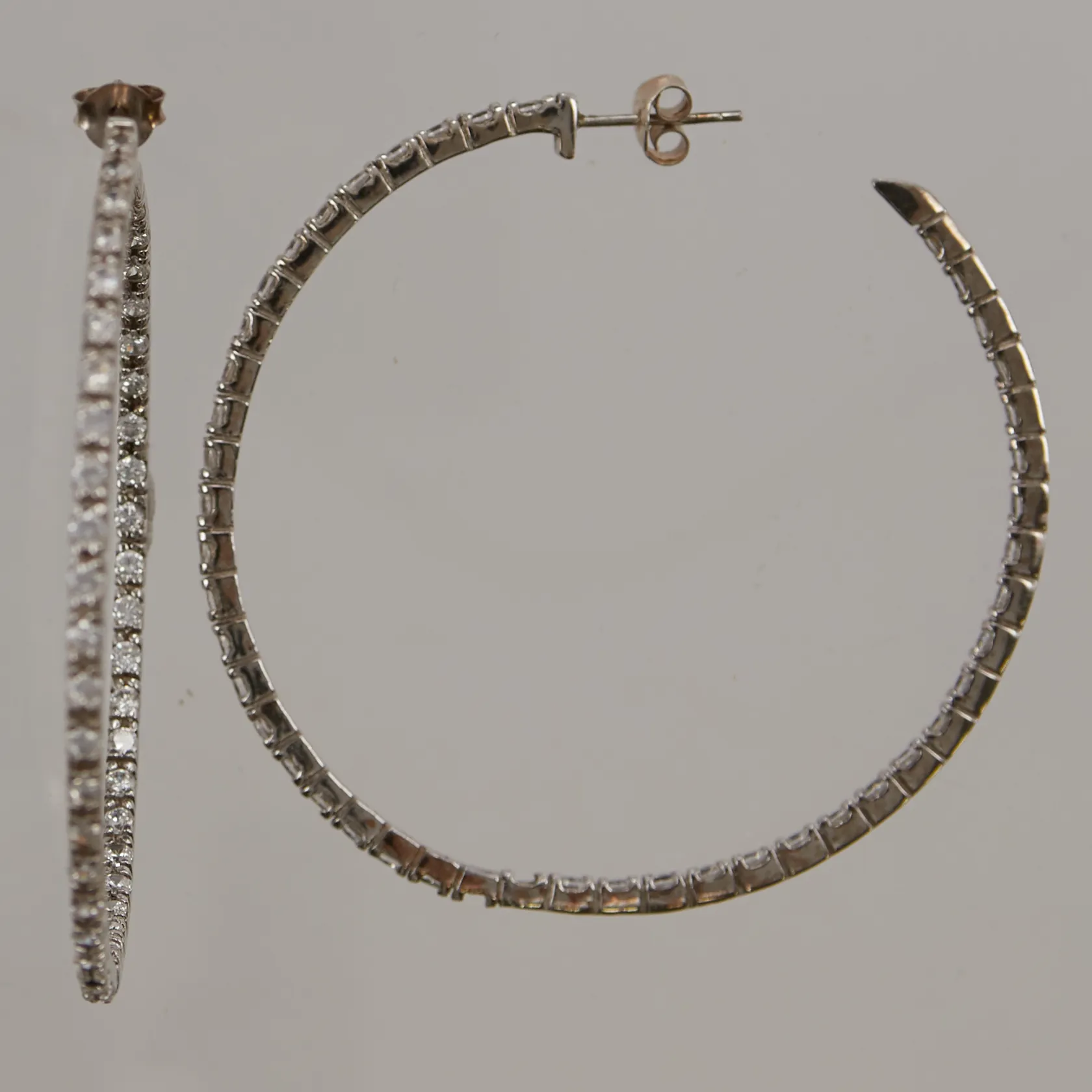 Ett par örhängen, 55mm, vita stenar, 925/1000 Silver 11,0g. Vikt: 11 g.