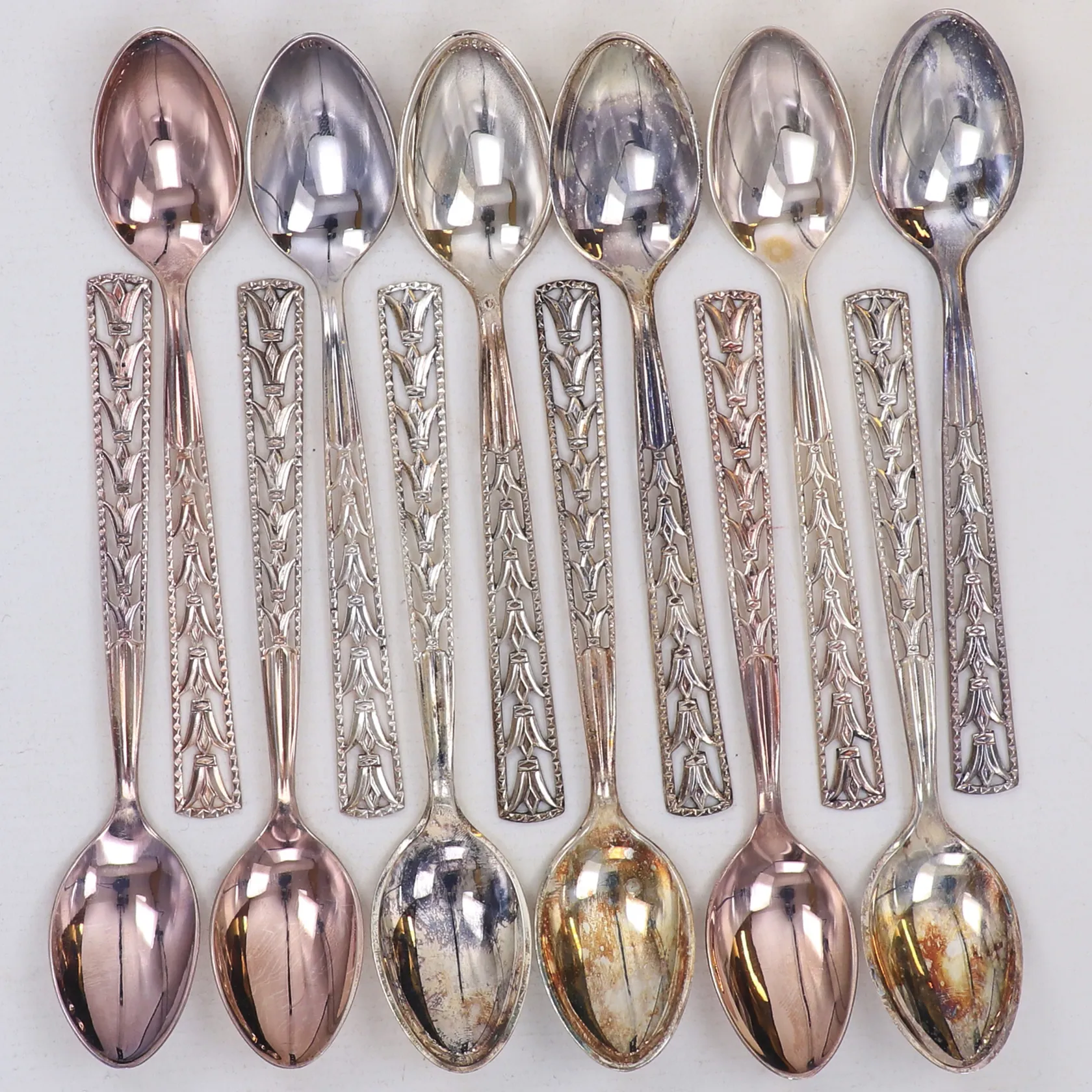 12 skedar, längd 11cm, modell Victoria, GEWE, år 1979, 830/1000 silver Vikt: 108,8 g.