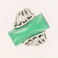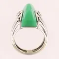 Ring med krysopras samt briljantslipade diamanter 8 x ca 0,03ct, stl 16½, bredd 4 - 20mm, Siegfried Egger, Stockholm, 1979, 18K vitguld. Vikt: 12,1 g.