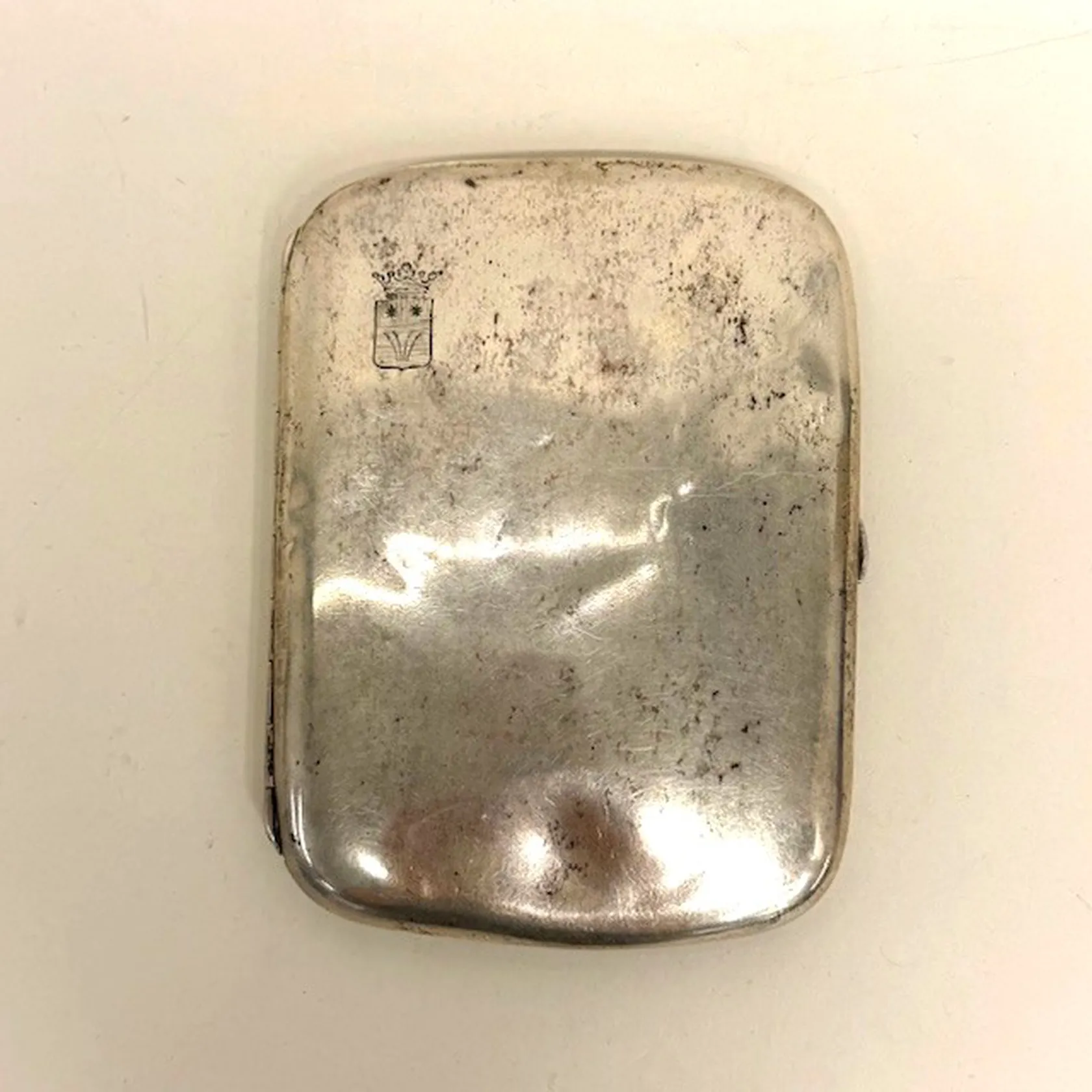 Cigarettetui, längd 13cm, bredd 9,5cm, bucklor, gravyr, 830/1000 silver Vikt: 155,2 g.