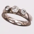 Ring med äldre briljantslipade diamanter, 1 x ca 0,25ct, kvalitet ca W-TCr(H-I)/P, nagg, samt 2 x ca 0,15ct kvalitet ca W-TCr(H-I)/SI, bredd 47mm, stl: 16½,18K vitguld, vikt 9,2 gram Vikt: 9,2 g.