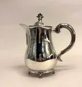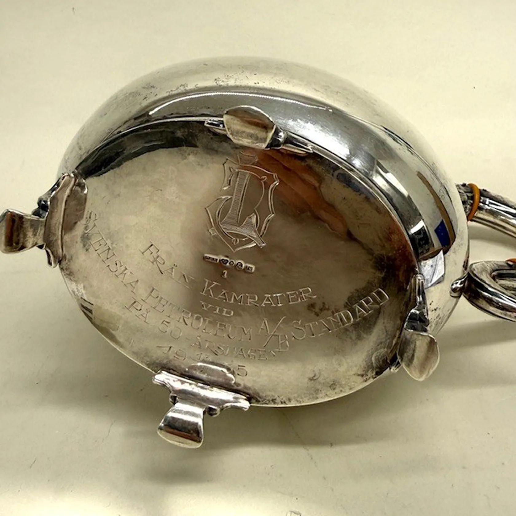 Kaffekanna, höjd 24cm, bredd 21cm, CG Hallberg, år 1935, gravyr på undersida, 830/1000 silver Vikt: 530,3 g.