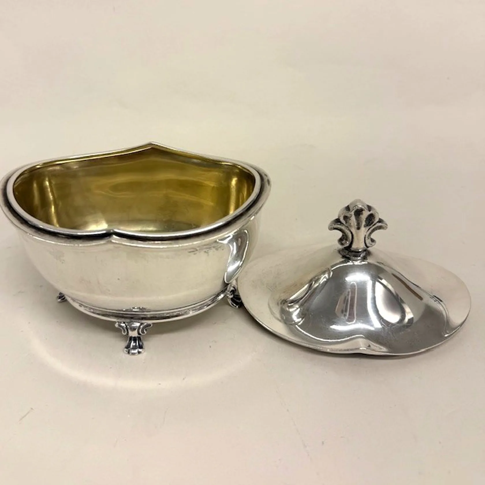 Sockerskål med lock, höjd ca 13cm, bredd 13cm, CG Hallberg, år 1935, 830/1000 silver Vikt: 259,3 g.