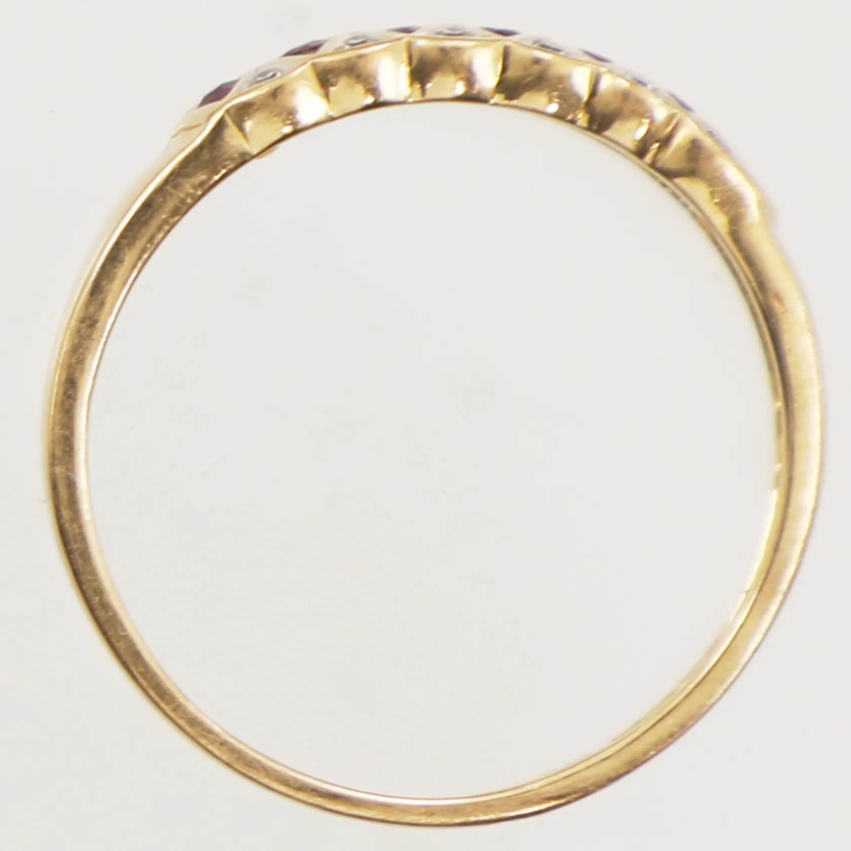 Ring med syntetiska rubiner samt diamanter, 12xca0,005ct, stl18, bredd 1,6-4mm, GHA, 18K Vikt: 2,4 g.