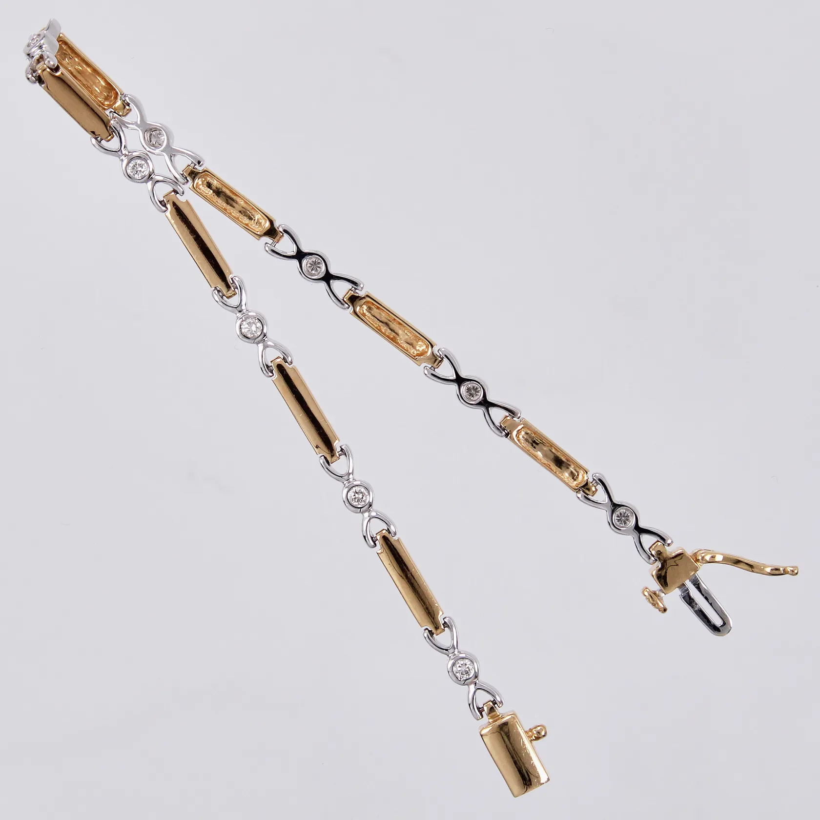 Armband vitguld/gult guld med diamanter ca 9x0,03ct längd: ca 18,3cm, bredd: ca 2mm, 18K Vikt: 9,6 g.