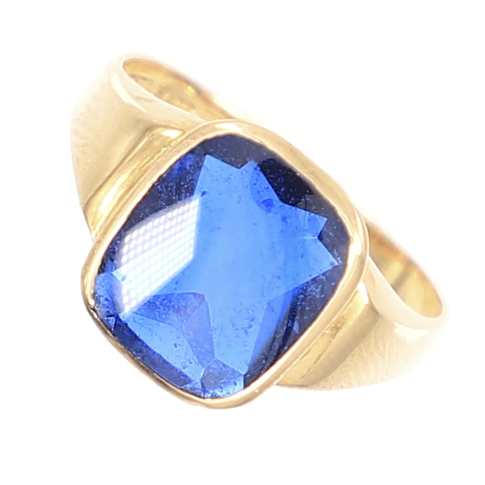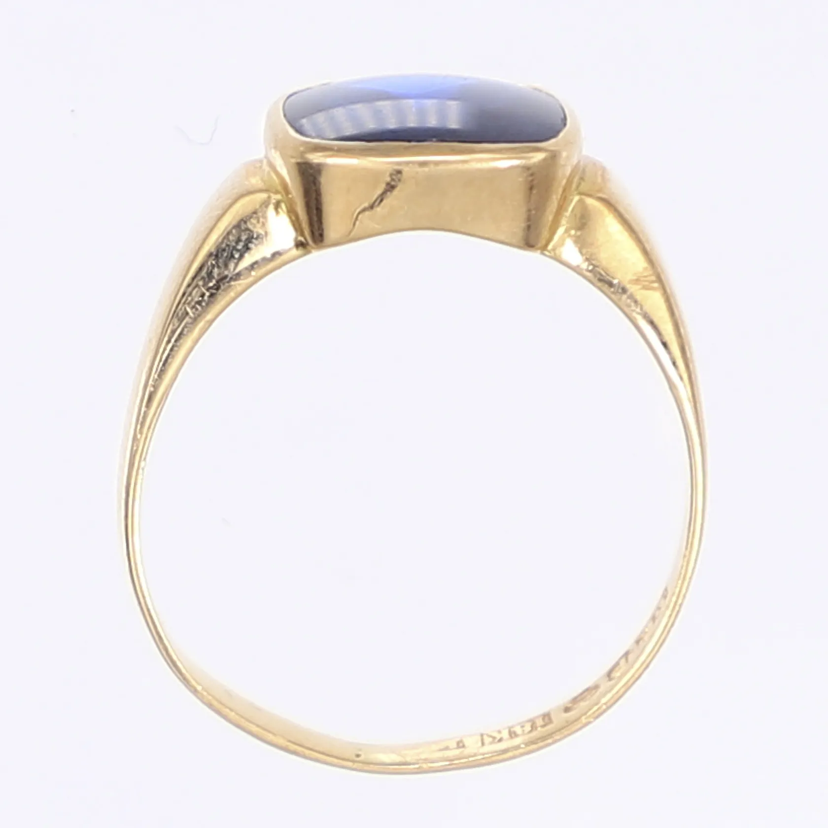 Ring med slipad blå sten stl 18½ bredd 2-10mm svenska stämplar något ojämn skena 18K Vikt: 3,1 g.