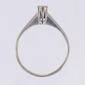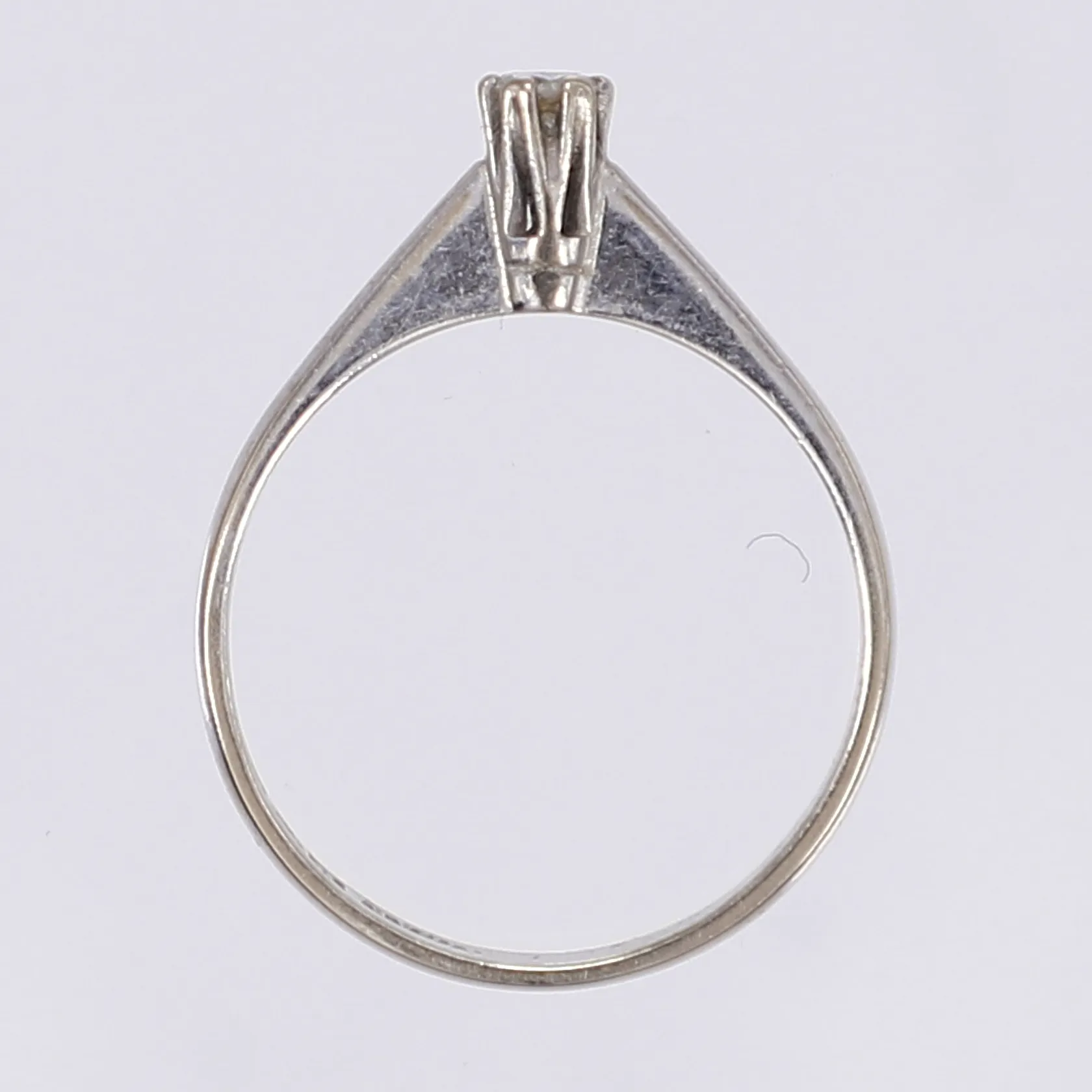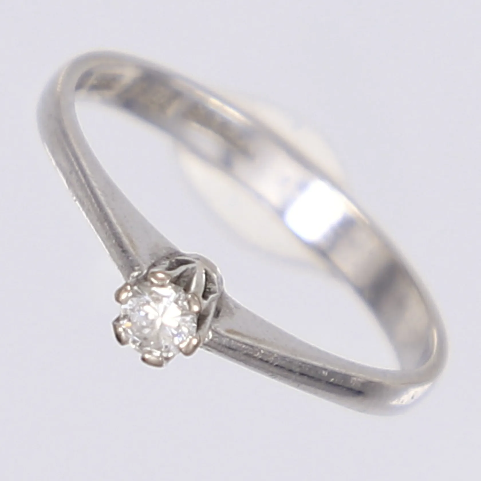 Ring med diamant 1x0,10ct enl. gravyr, stl 17, bredd 2,5-3,5mm, svenska stämplar, vitguld 18K Vikt: 2,3 g.