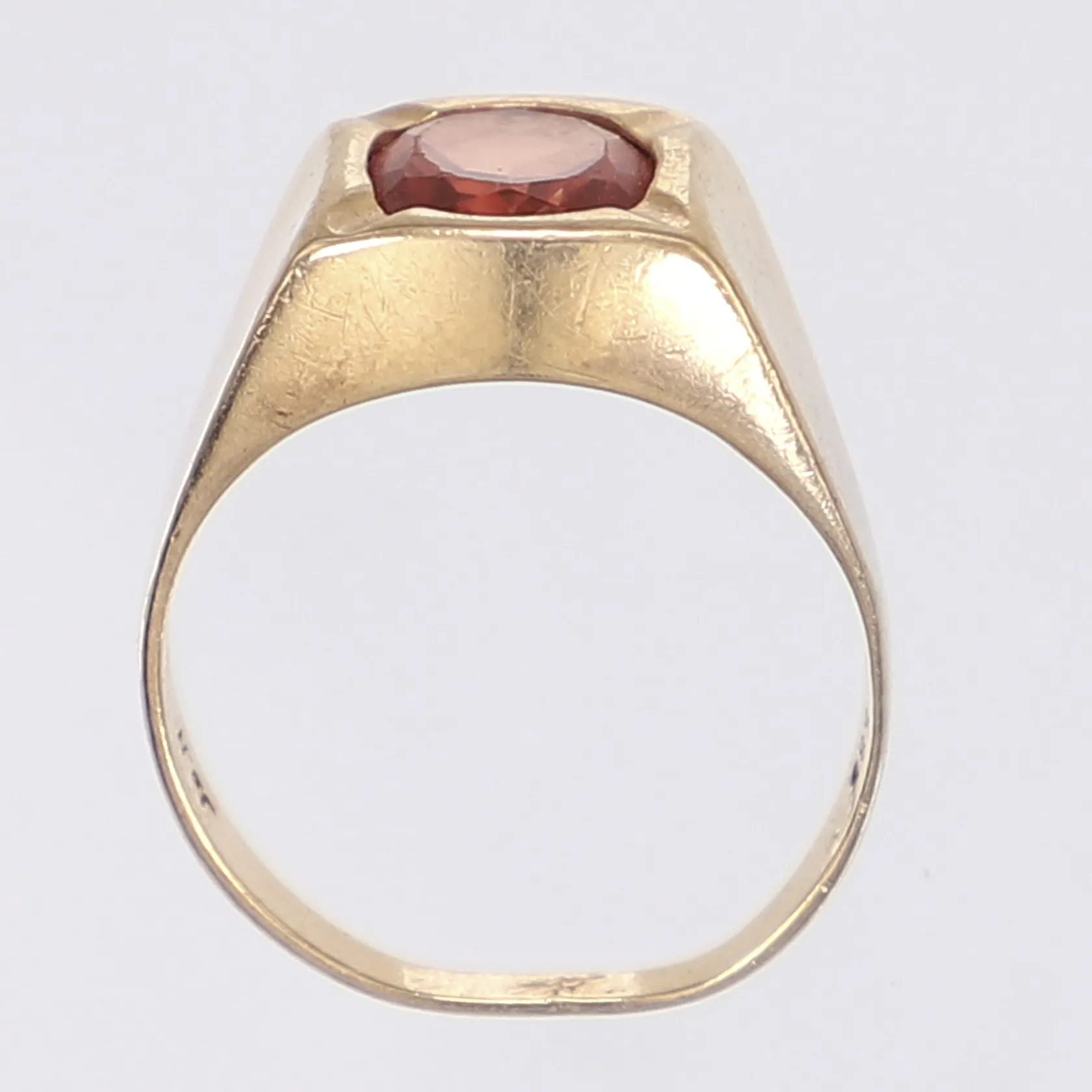 Ring med ljusröd slipad sten stl 18 bredd 2-10mm slitage skev skena 14K Vikt: 3,9 g.