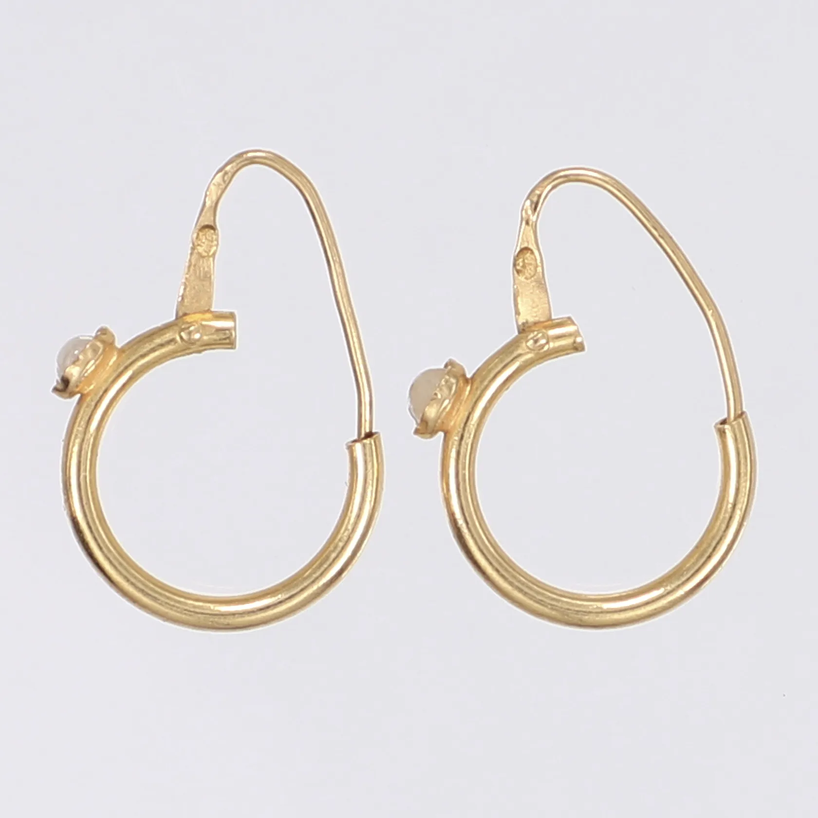 Ett par örhängen med varsin ljus glaspärla höjd 18mm 18K Vikt: 1 g.