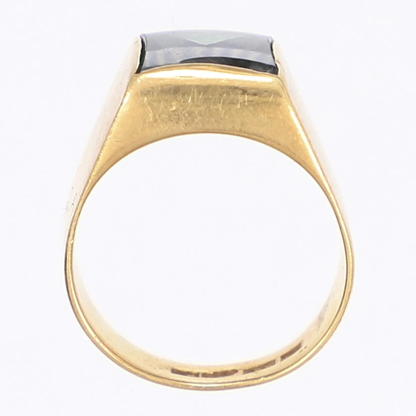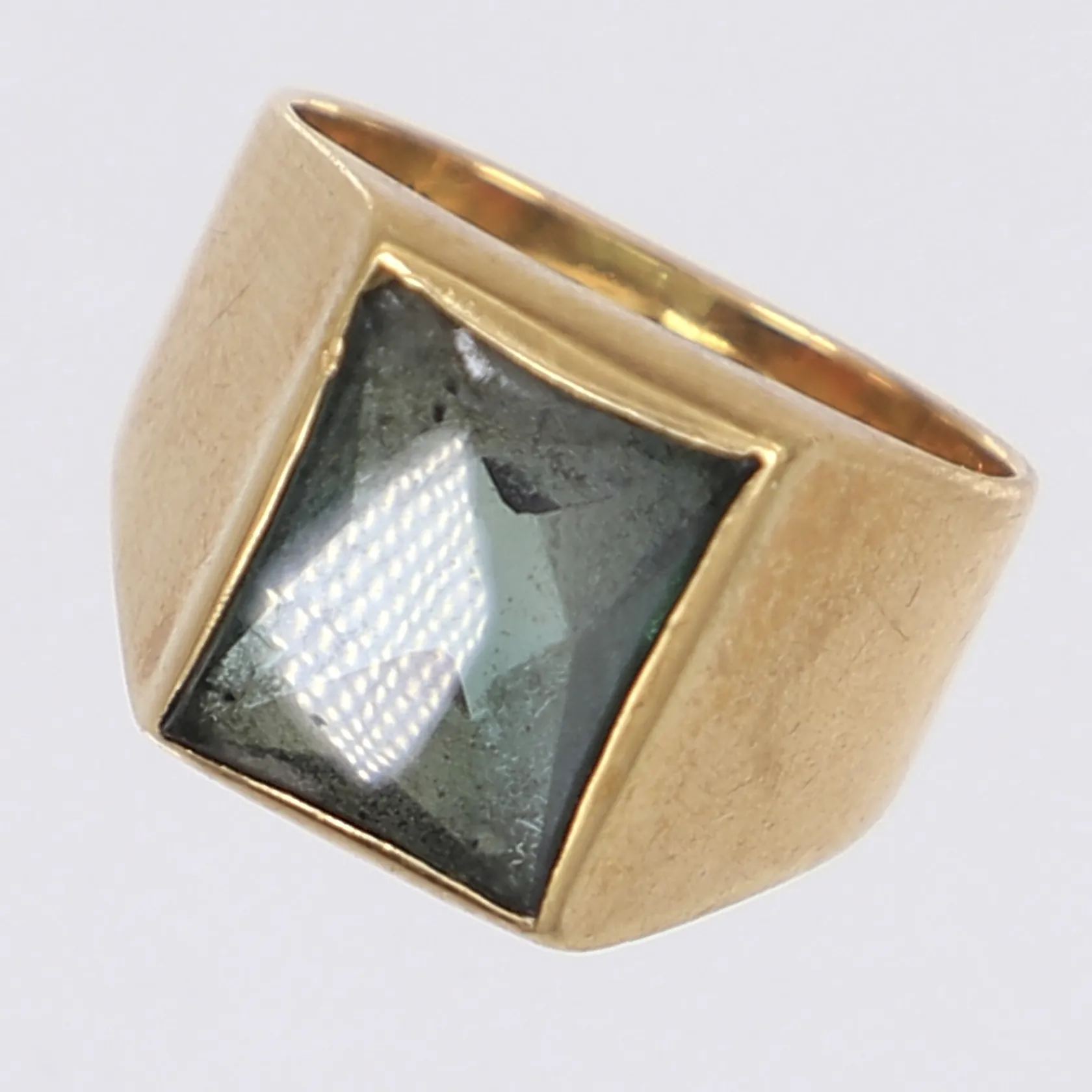 Klackring med grön sten, stl 17, bredd 5-13mm, 18K Bruttovikt: 6,6g Vikt: 6,6 g.