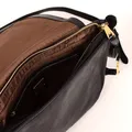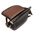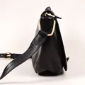 Väska Lauren Ralph Lauren, Ashfield Amari Saddle, svart skinn med detaljer av gulmetall, invändigt fodrad med tre fack, axelrem, ca 33x9x20cm, slitage, märken repor.