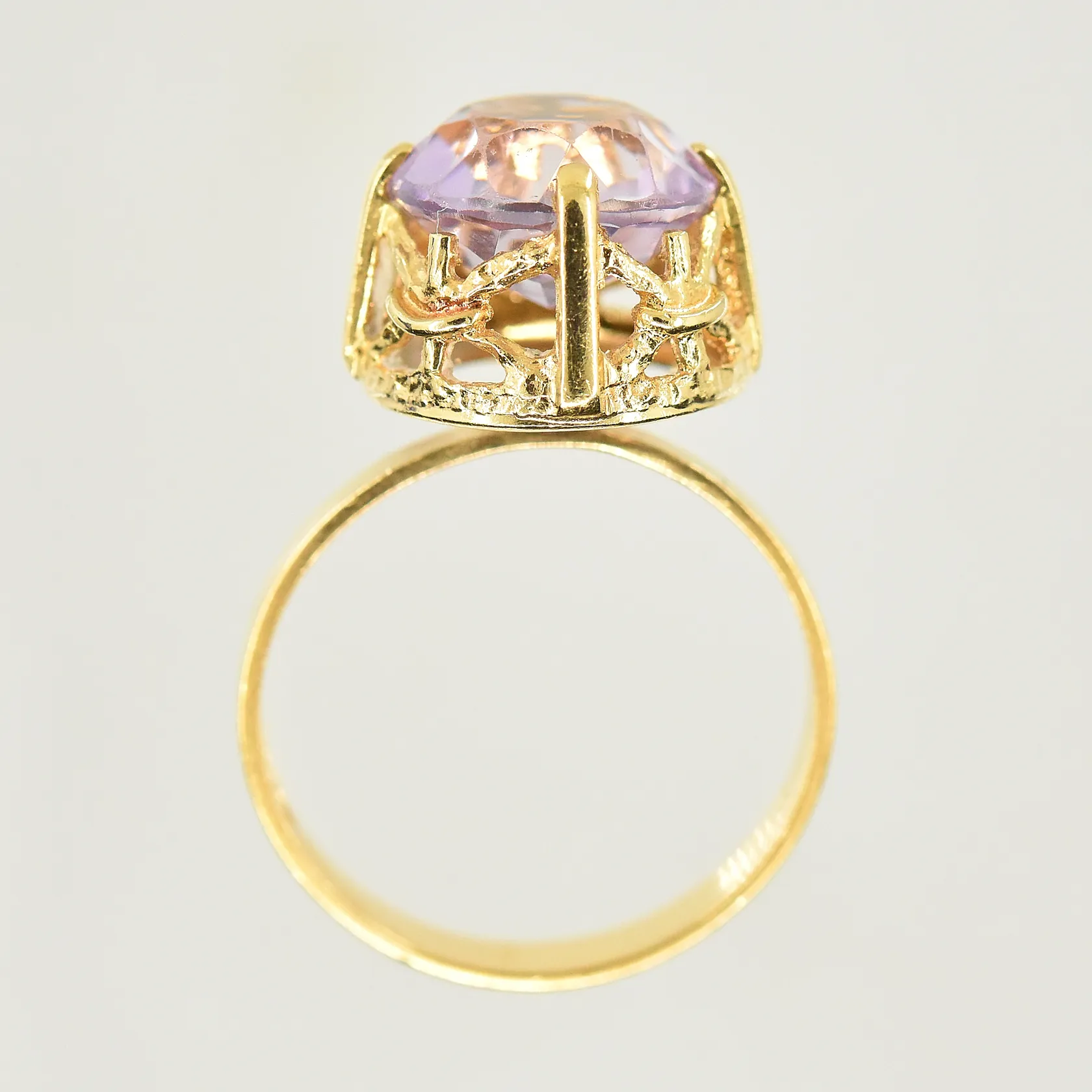 Ring med lila sten, stl 16½, bredd 3-12 mm, 18K. Vikt: 4 g.