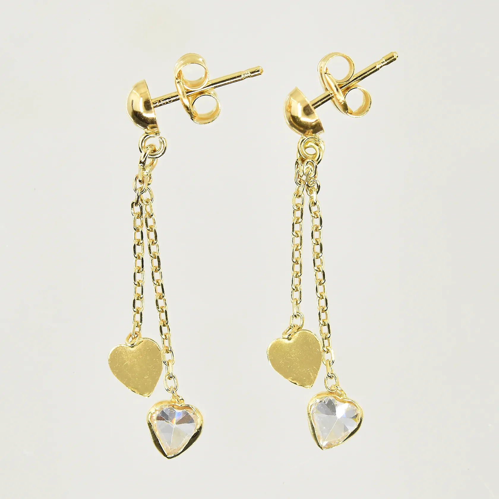 Ett par örhängen hjärtan med vita stenar