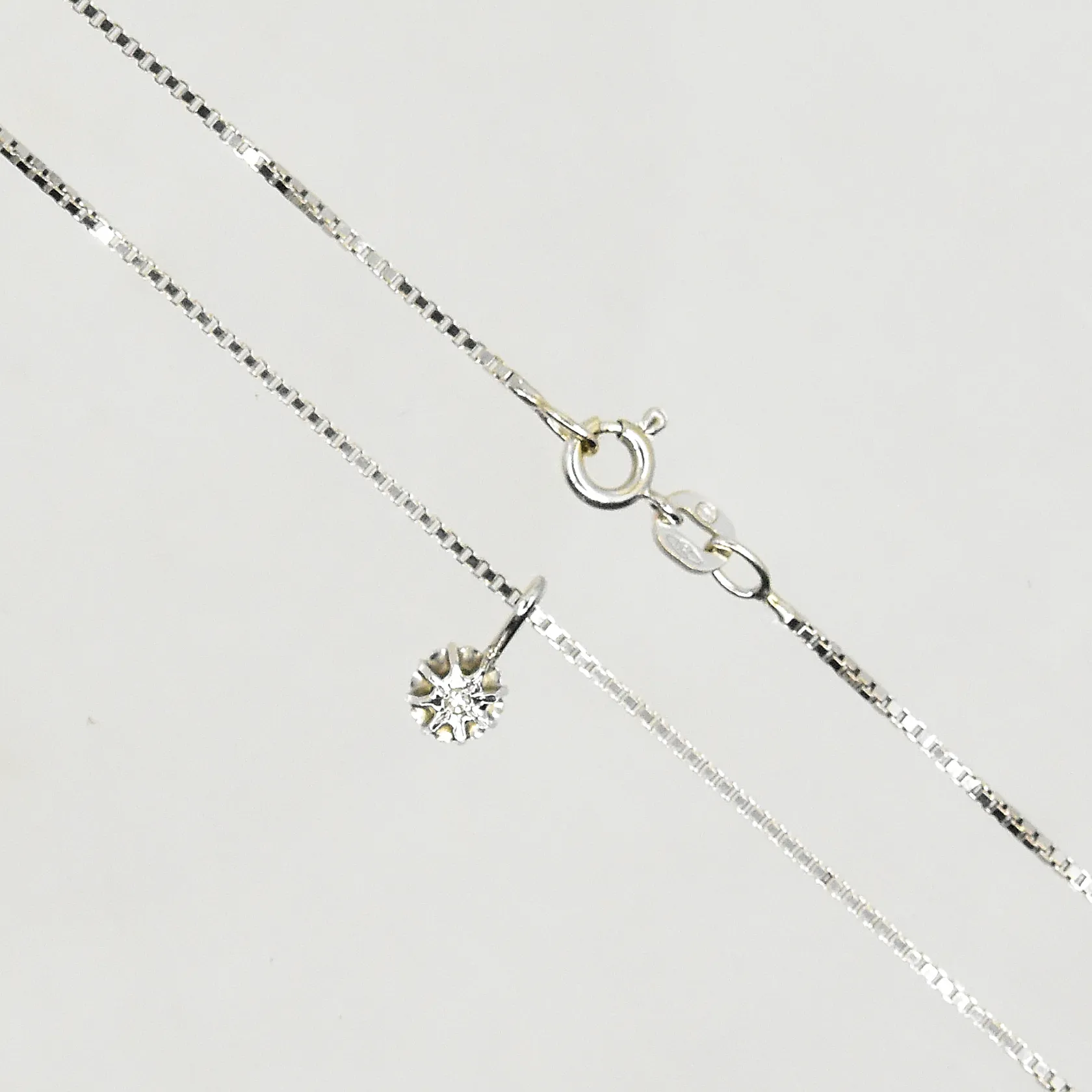 Kedja Venezia med hänge med vit sten, längd 45 cm, länkens bredd 1 mm, vitguld, 18K. Vikt: 3,9 g.