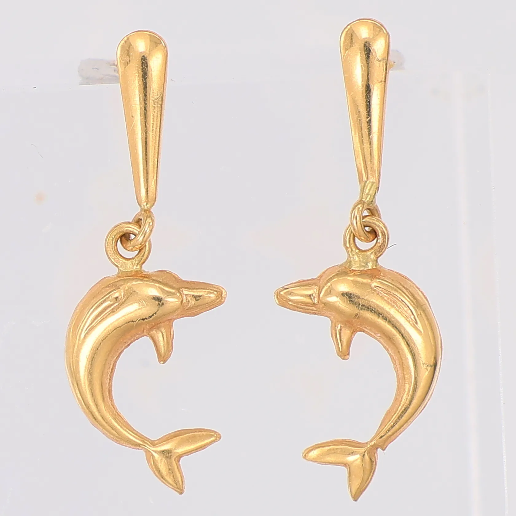 Ett par örhängen, delfiner, 20mm, 18K Vikt: 0,7 g.