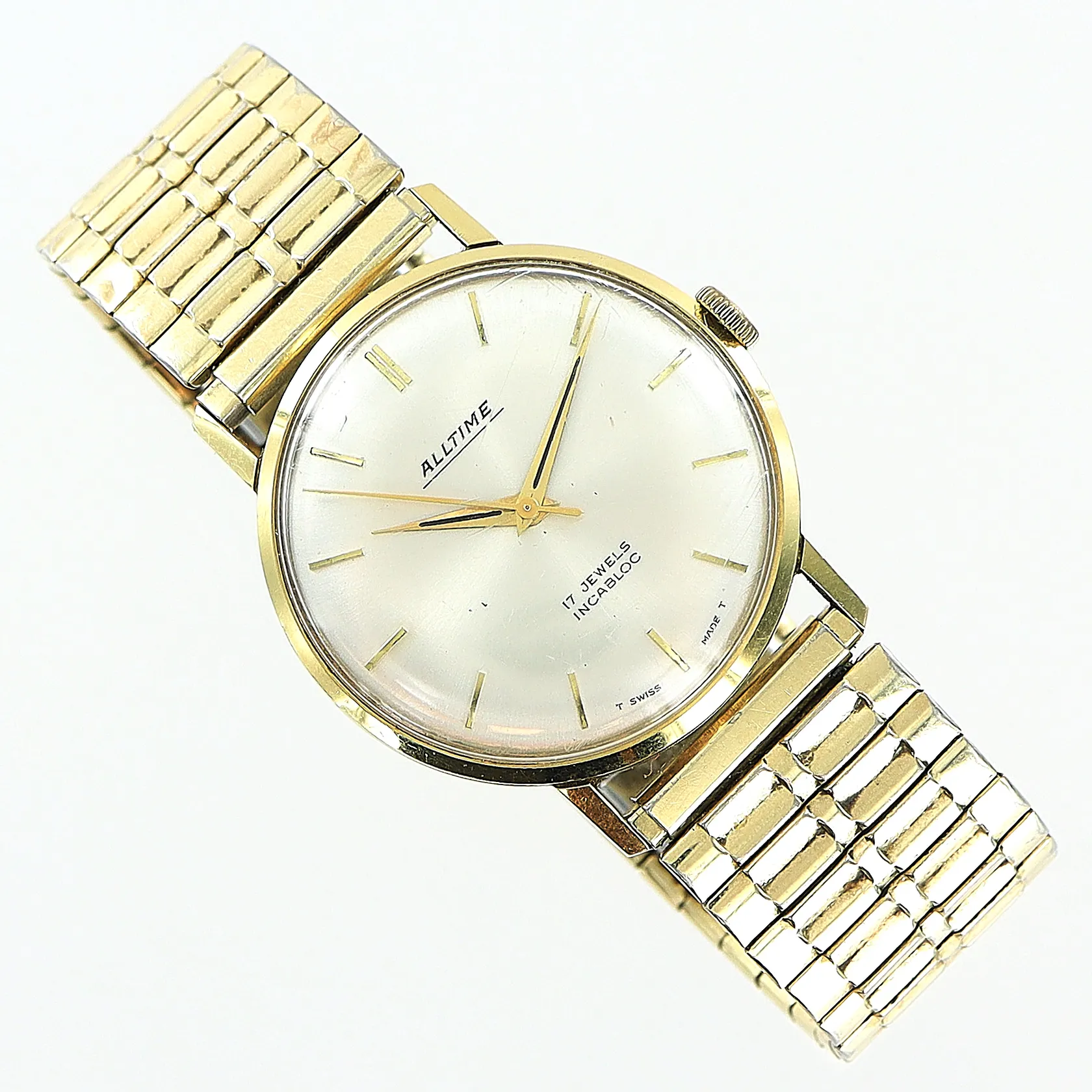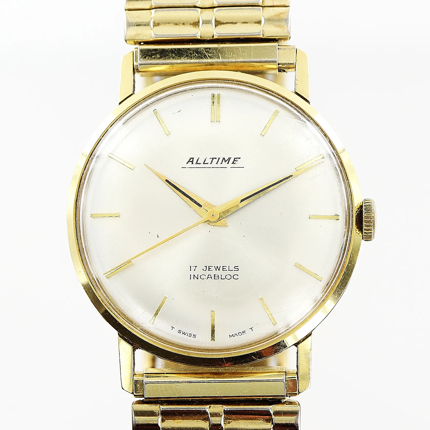 Herrur Alltime, 18K, manuell, Ø33mm, repor på glas, flexlänk, inga tillbehör.