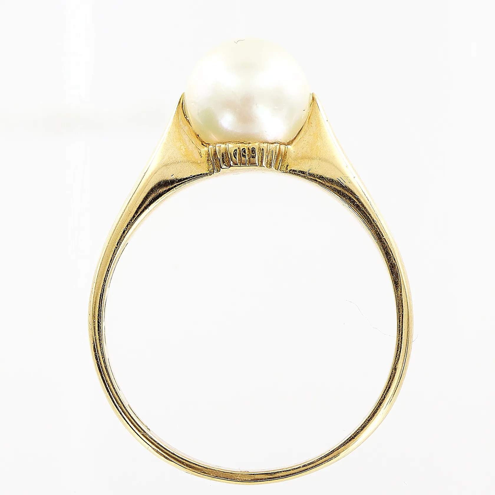 Ring, odlad saltvattenspärla Ø7,3mm, stl 17½, bredd 1,8mm, 18K. Vikt: 3,6 g.