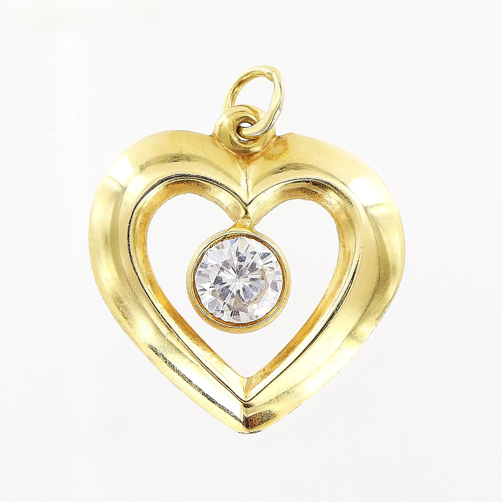 Hänge med vit sten 20x18mm, hjärta, 18K Vikt: 0,8 g.