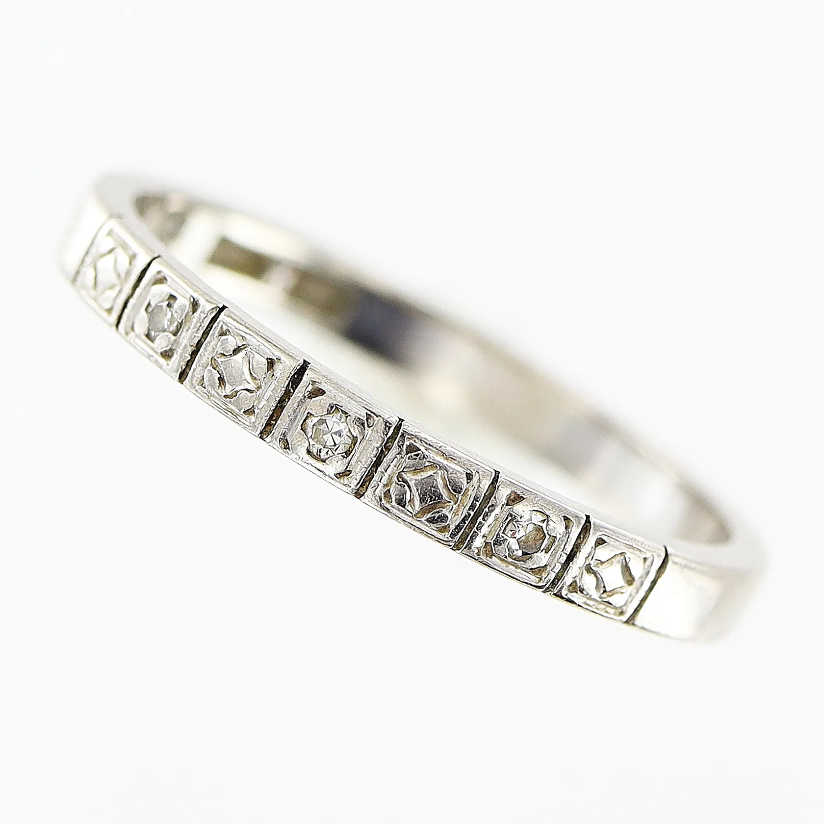 Ring, diamanter 3 x ca 0,005ct, stl 16½, bredd 2mm, vitguld, 18K. Vikt: 2,2 g.