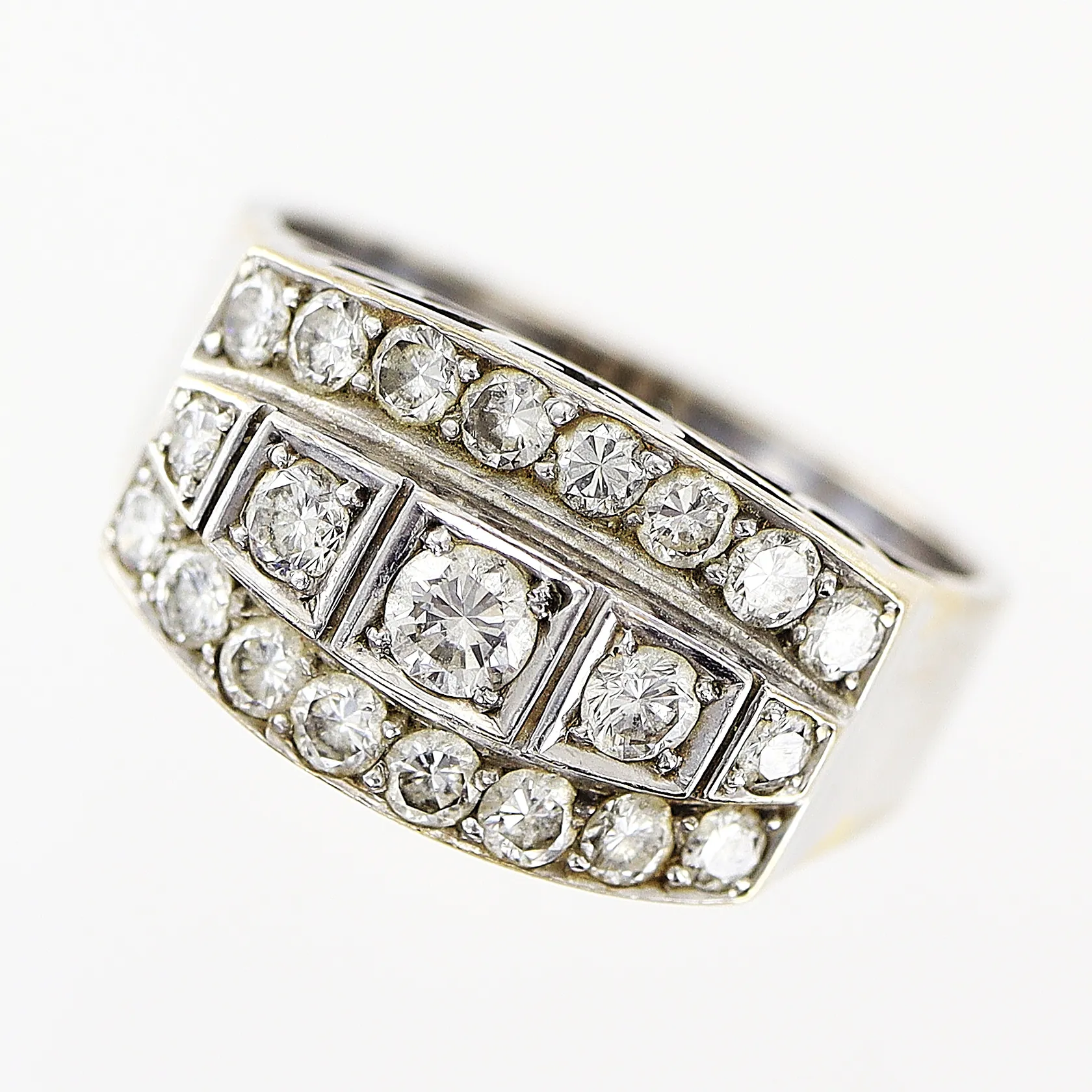 Ring, diamanter 0,52ctv enligt gravyr, stl 14¾, bredd 3,5-8,5mm, vitguld, 18K. Vikt: 5 g.