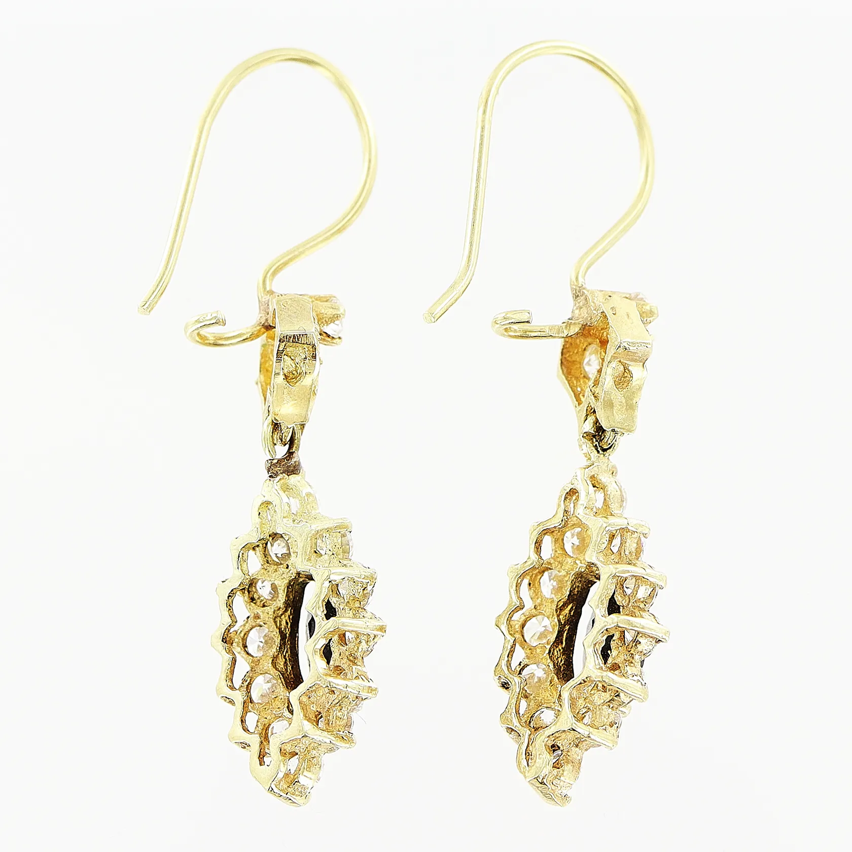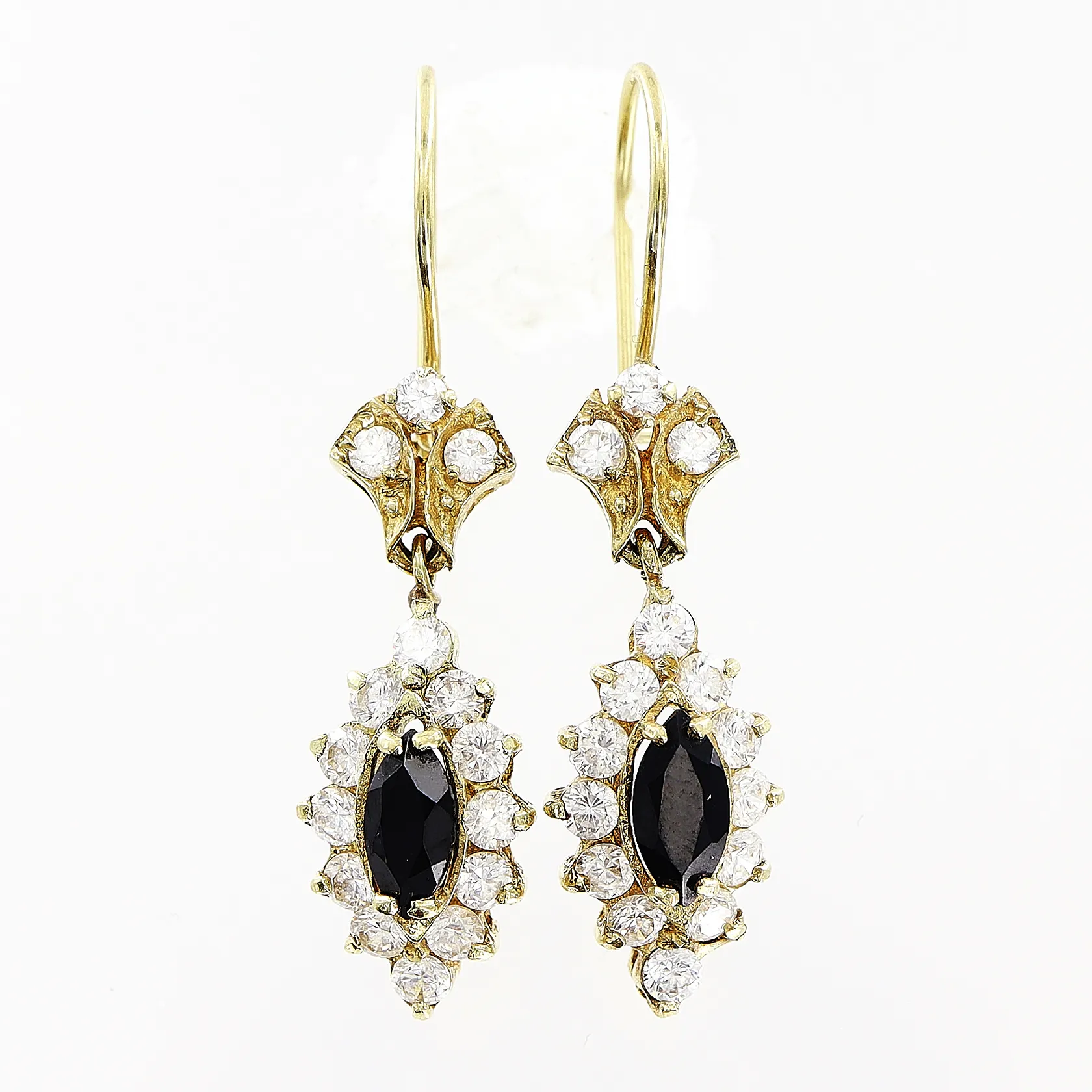 Ett par örhängen, stenar, 4cm, bredd 9mm, 14K. Vikt: 5,3 g.