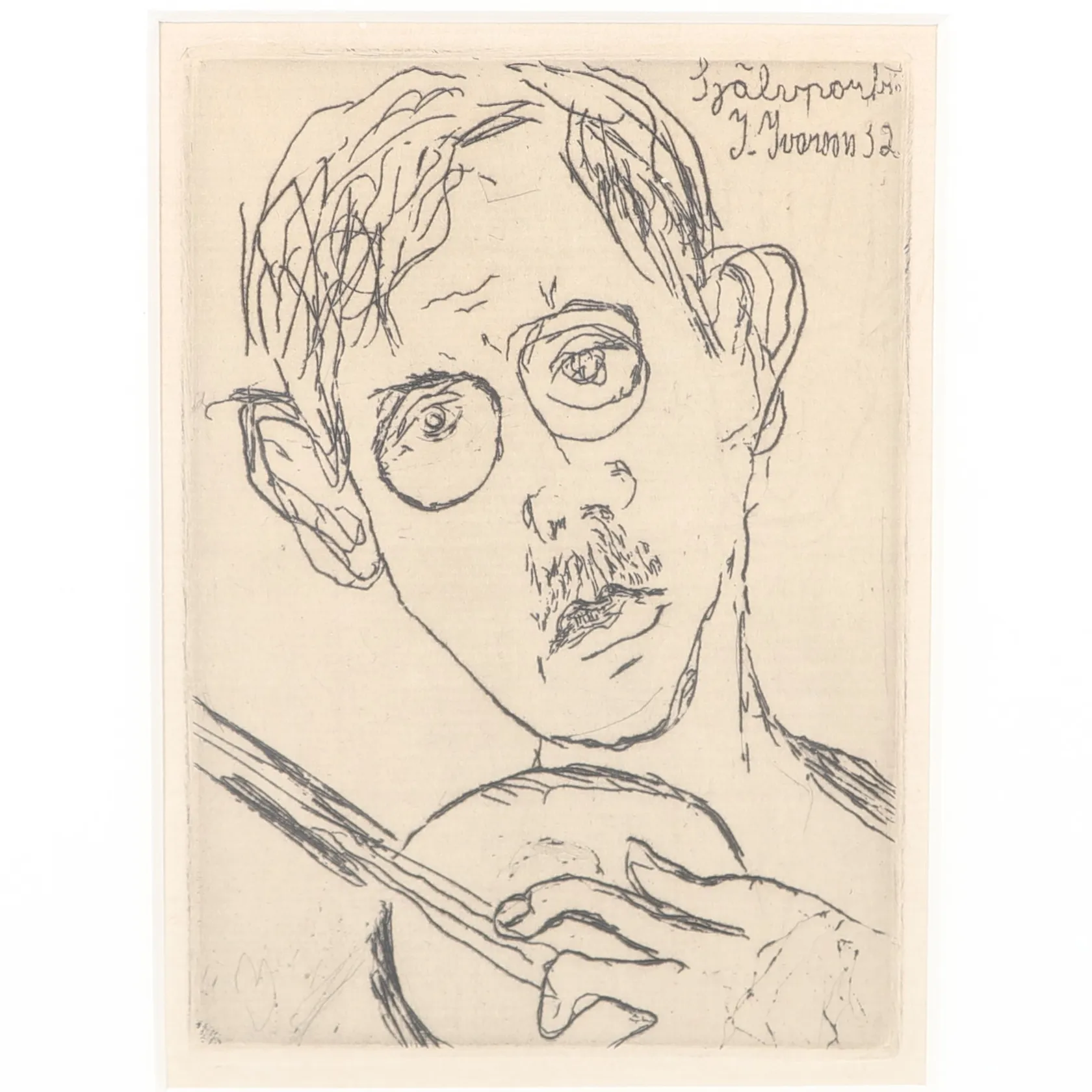 Tavla etsning Ivan Ivarsson-32 självporträtt, signerad i plåten, 12x9cm. Skickas med postpaket.