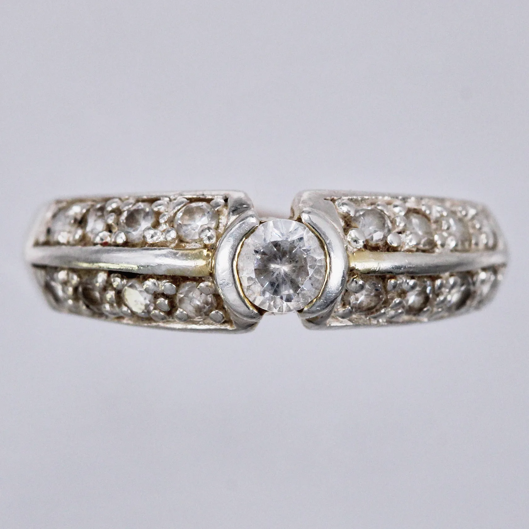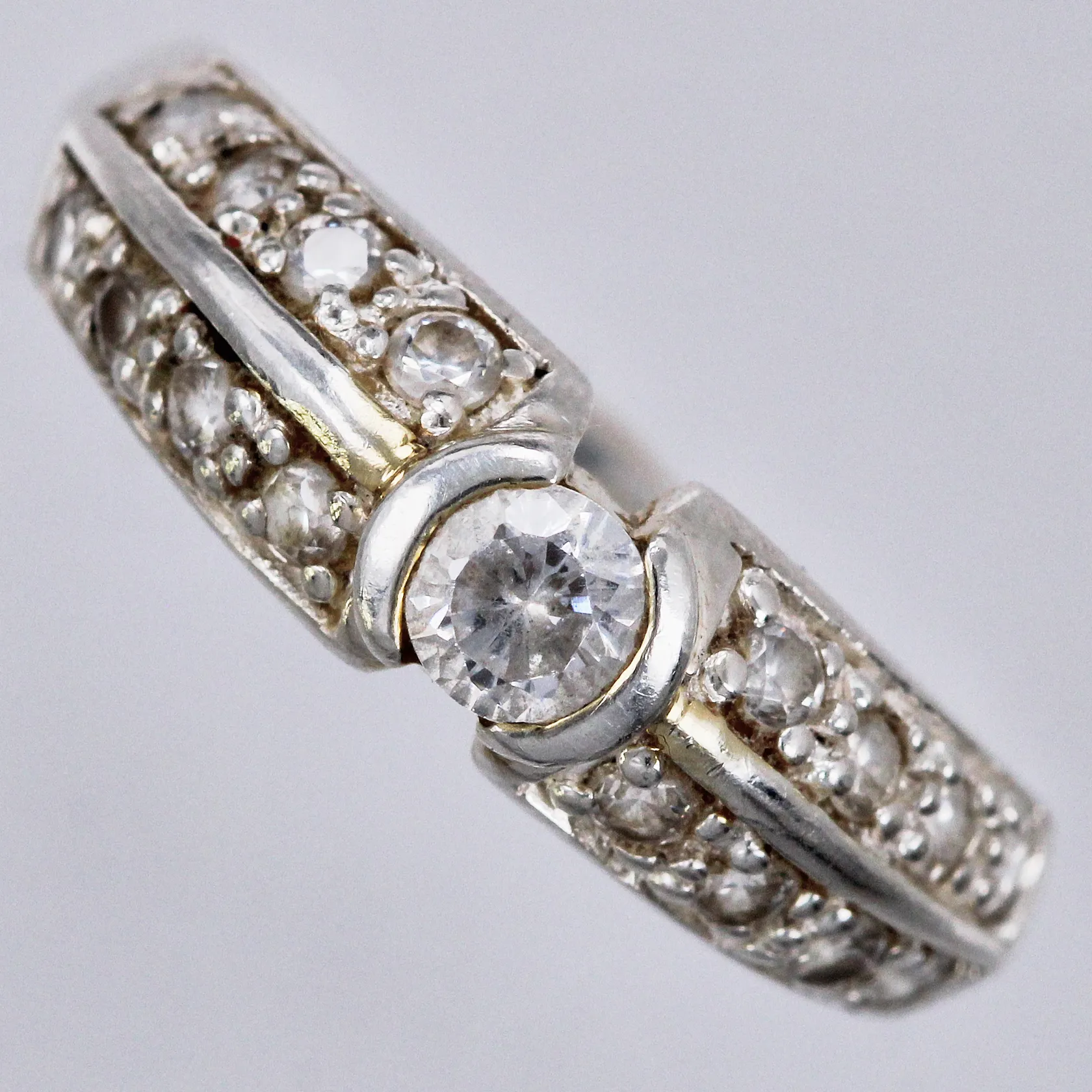 Ring med vita stenar, stl: 18½, bredd: ca 2-6mm, 925/1000, silver Vikt: 3 g.