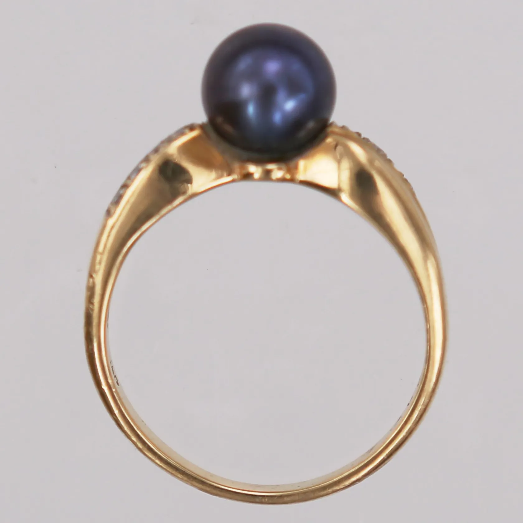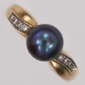 Ring med odlad pärla Ø 7mm & diamanter ca 8x0,01ct, stl: 16½, 18K Vikt: 4,4 g.