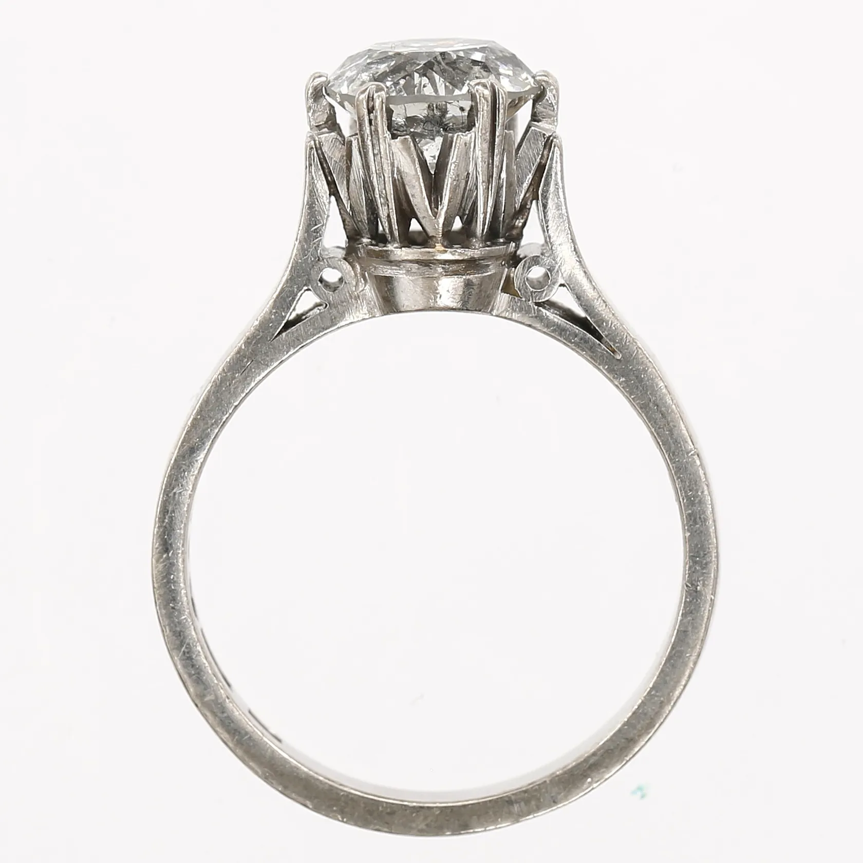 Ring med briljantslipad diamant 1,80ct enligt gravyr, kvalitet ca Cr-TCa(J-K))/Piqué, stl: 17, tillverkad av Rune Thorell Guldsmed Stockholm 1972, 18K vitguld Vikt: 6 g.