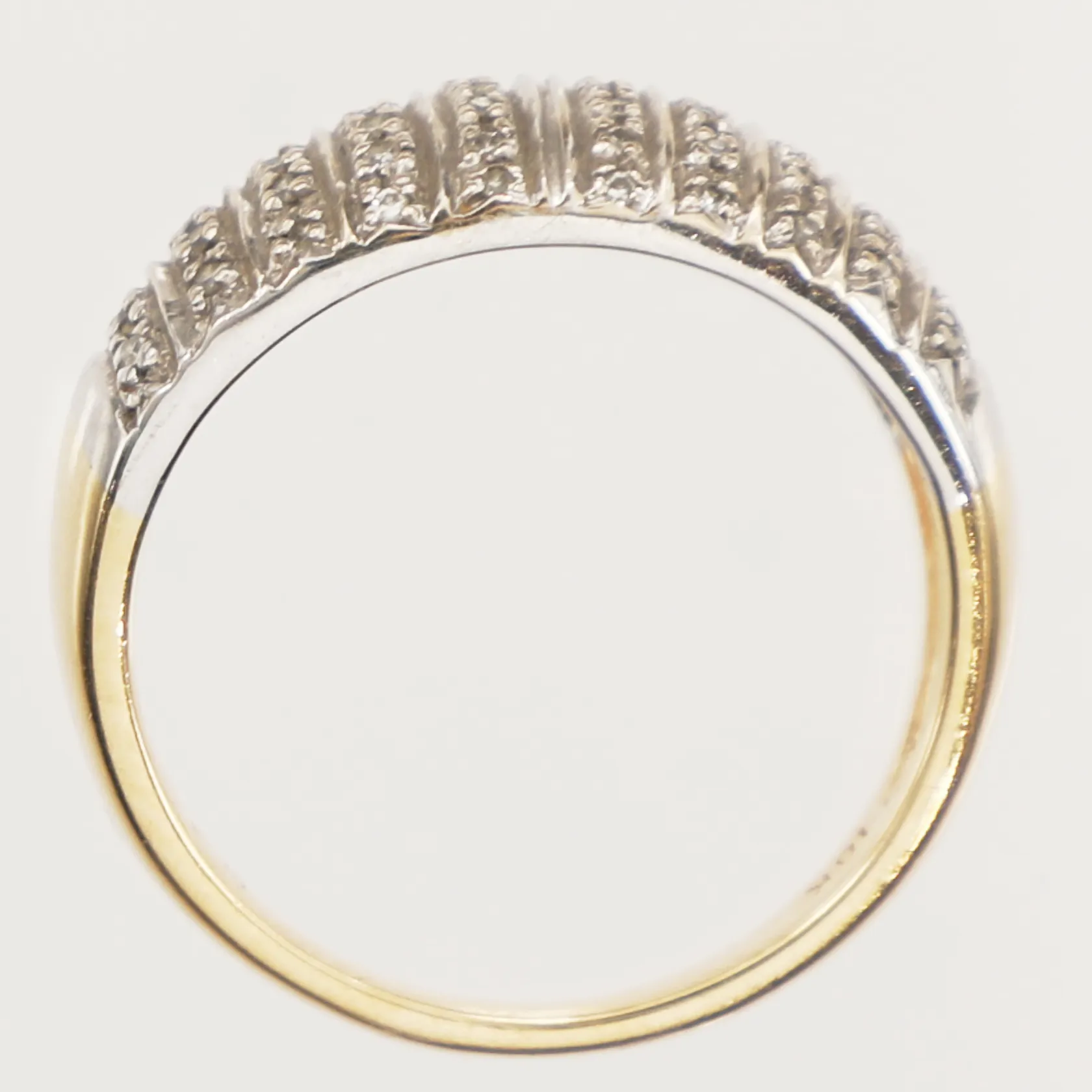 Ring med diamanter, 50xca0,005ct, stl 18, bredd ca 2,3-8mm, tvåfärgad, GHA, 18K Vikt: 5,1 g.