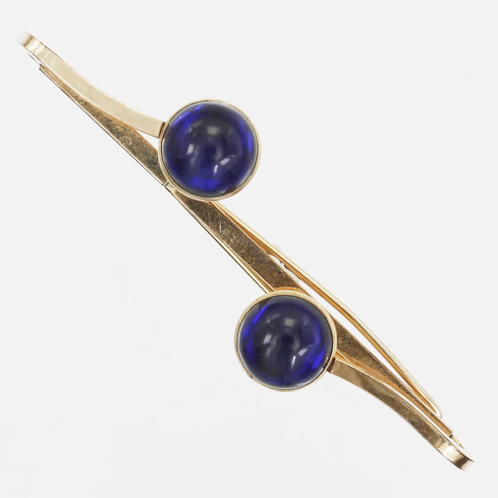 Slipsklämma LA Mode med blått glas, längd 70mm, bredd ca 20mm, guldpläterad. Vikt: 6,3 g.