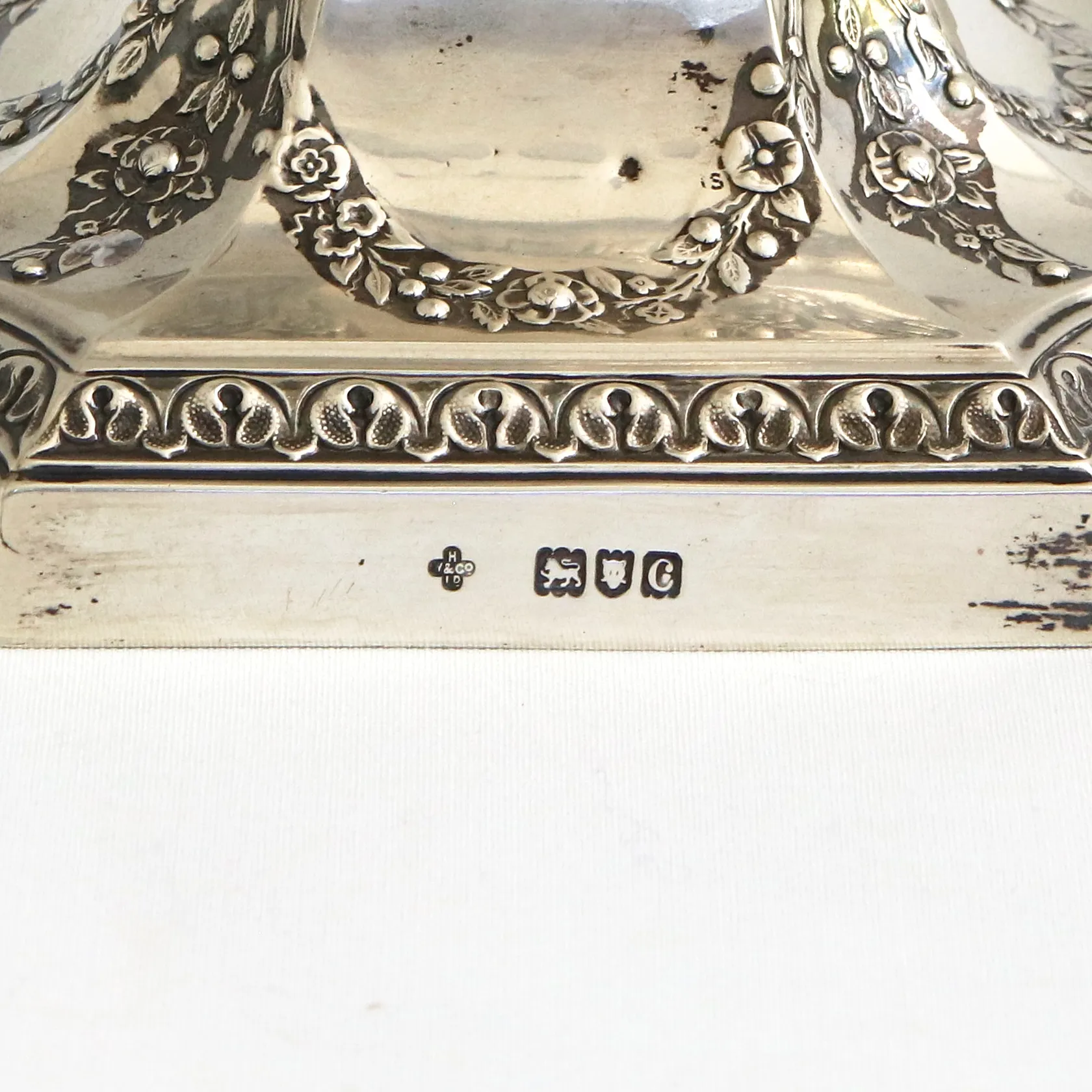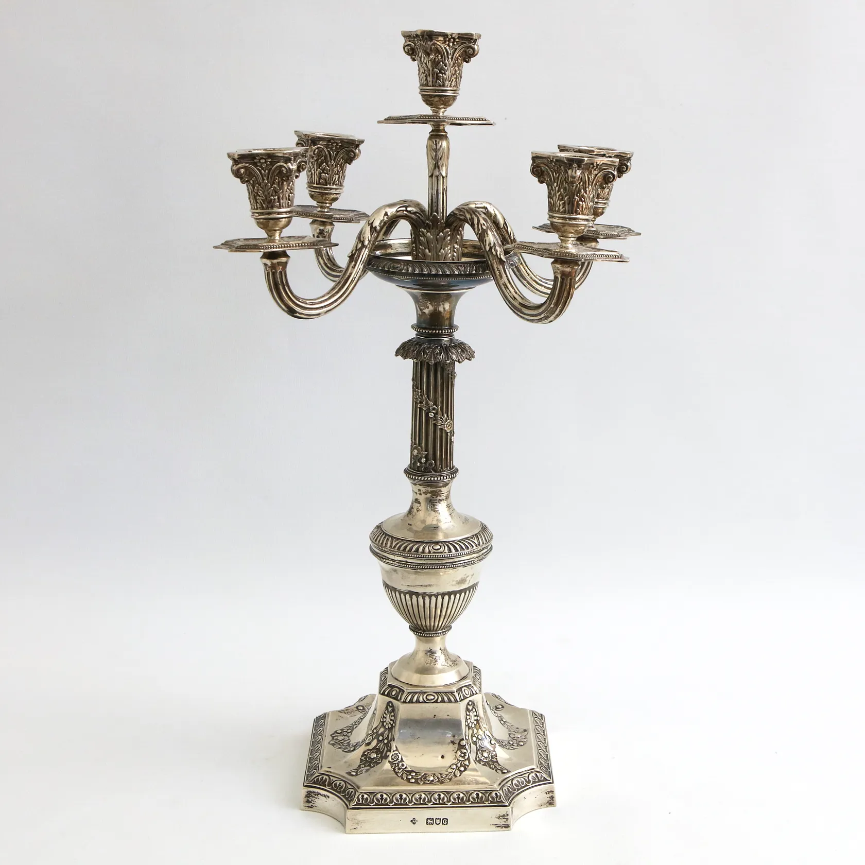 Kandelaber Henry Wilkinson Co London 1898, ca 50cm, foten 17x17cm, diameter ca30cm, smärre bucklor/skevheter, 925/1000 Silver, finns för visning på pantbanken Östermalm Vikt: 1591,6 g.