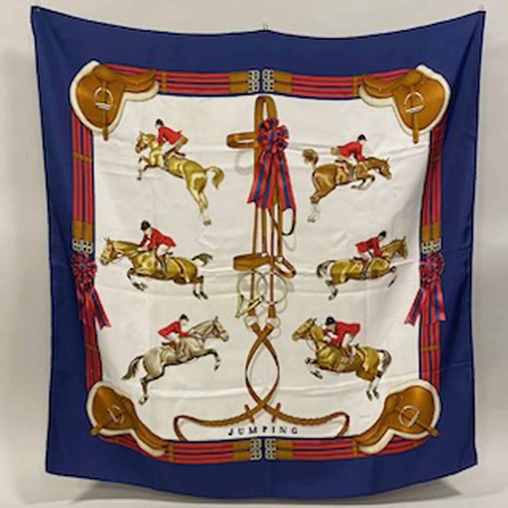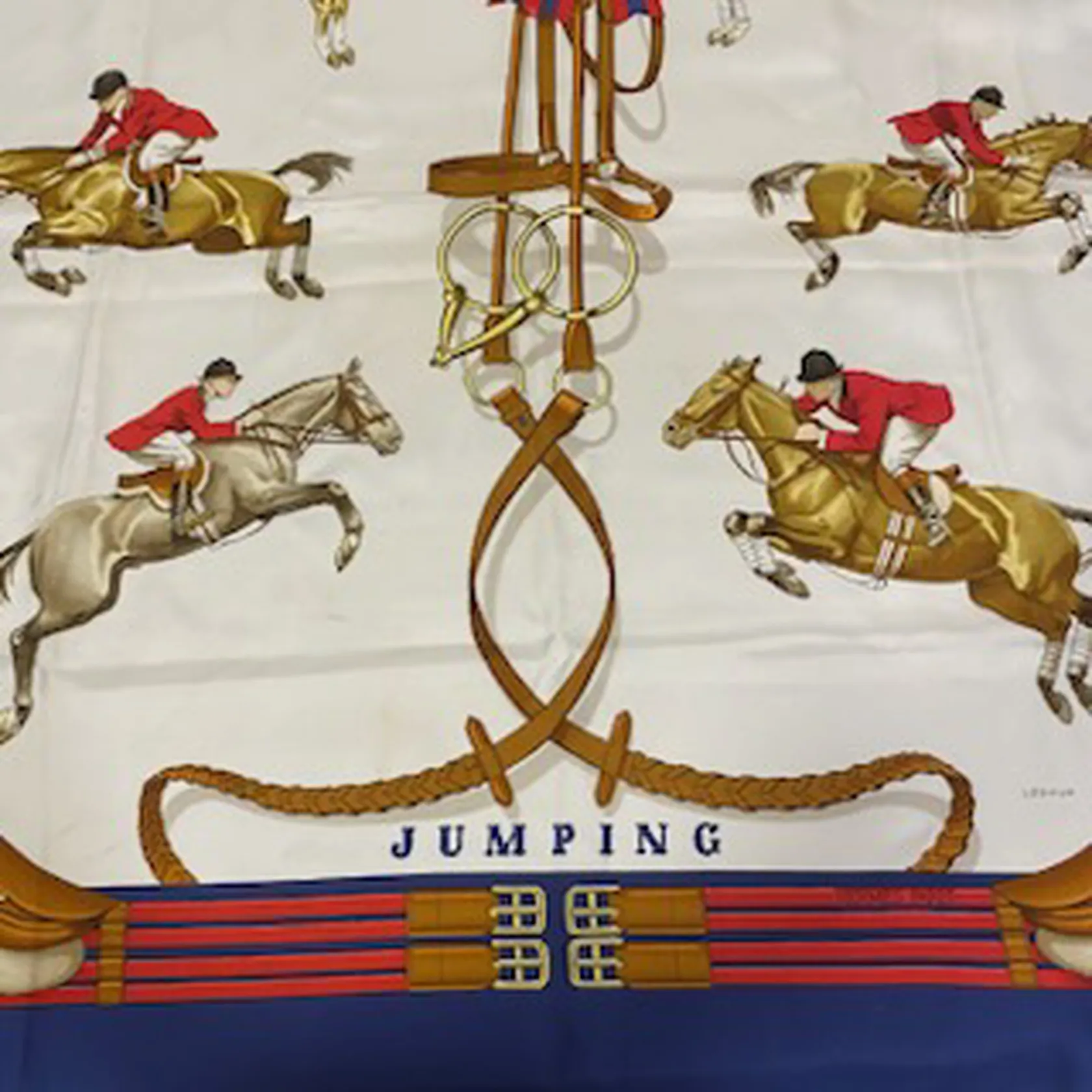 Scarf, Hermès, "Jumping", Phillipe Ledoux 1971, 90x90cm, fläckar.