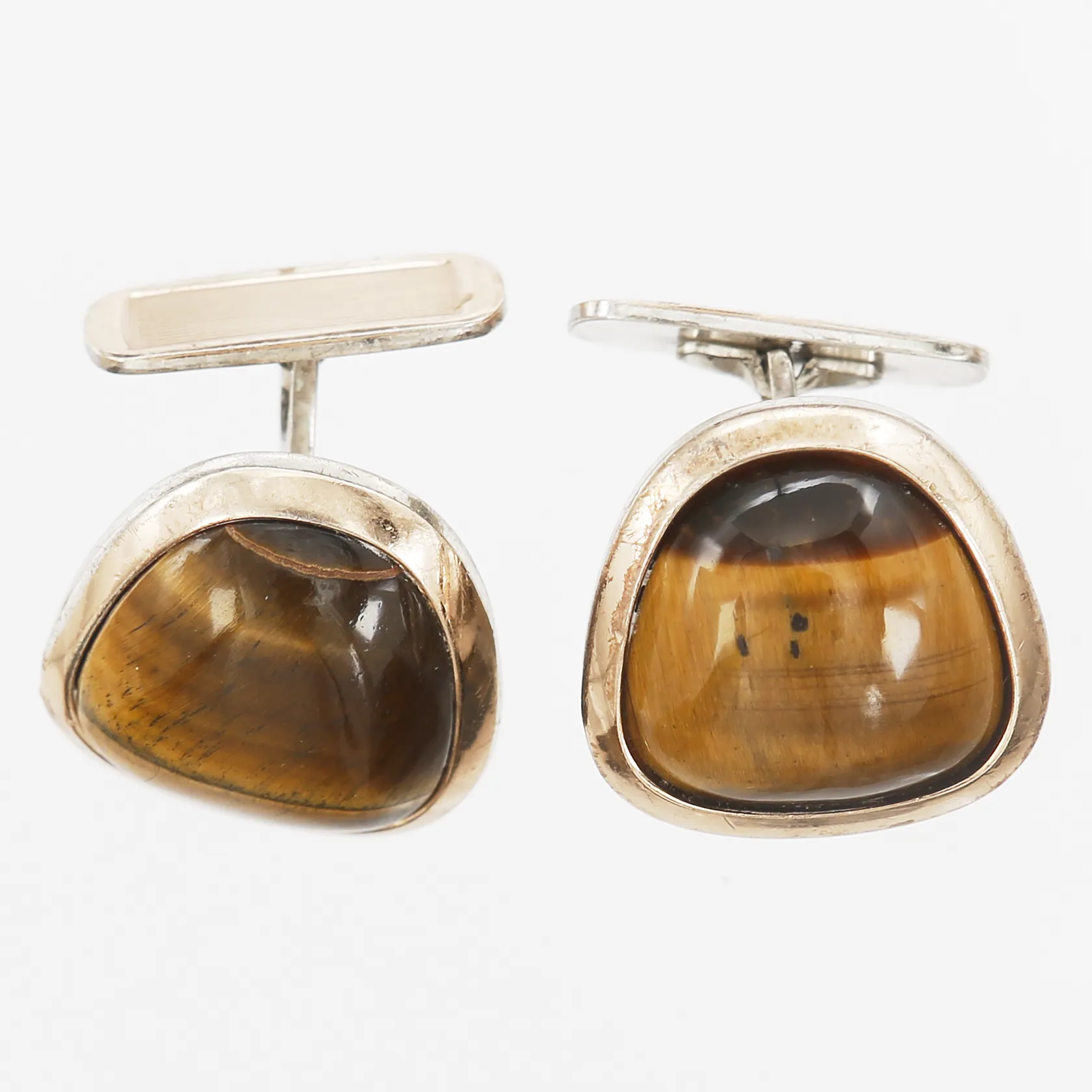 Ett par manschettknappar med tigeröga, silver 835/1000 Vikt: 18,8 g.
