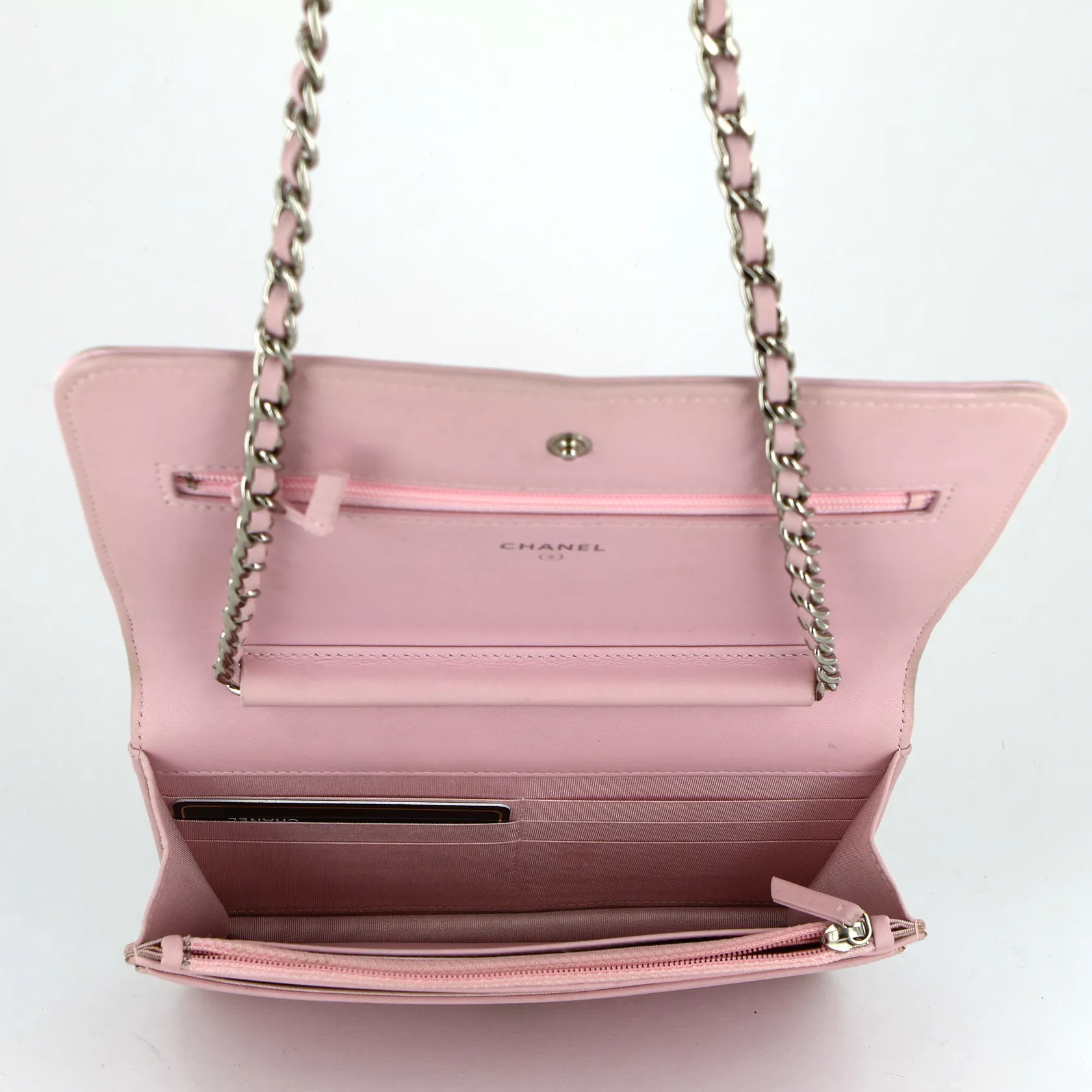 Väska Chanel, Wallet on Chain, light pink, serienr: 21880610, år 2015/2016, slitage på kanter/hörn, parfymdoft, med certifikat och dustbag,