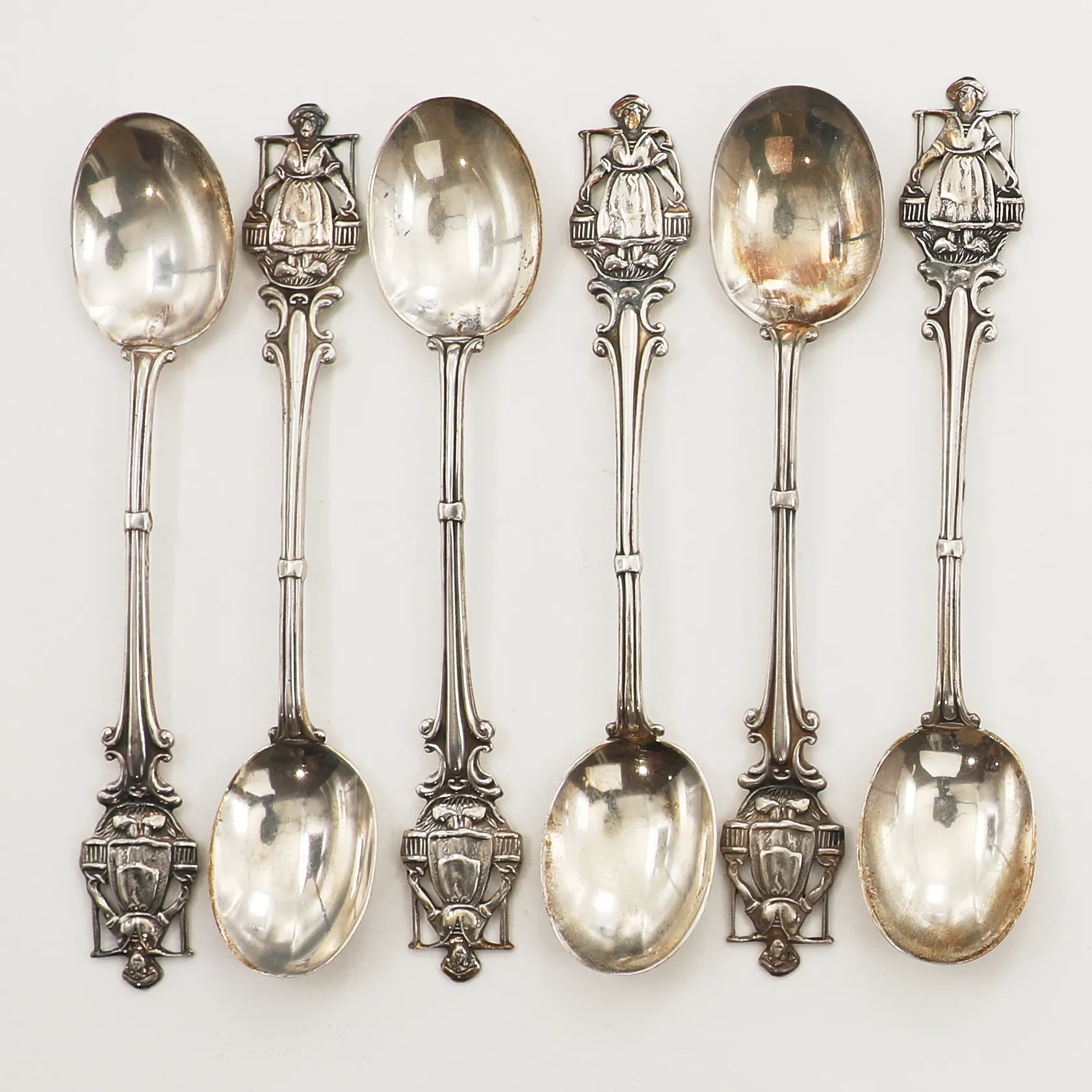 Sex kaffeskedar, längd 11,5cm, silver 830/1000, i ask Vikt: 72,2 g.