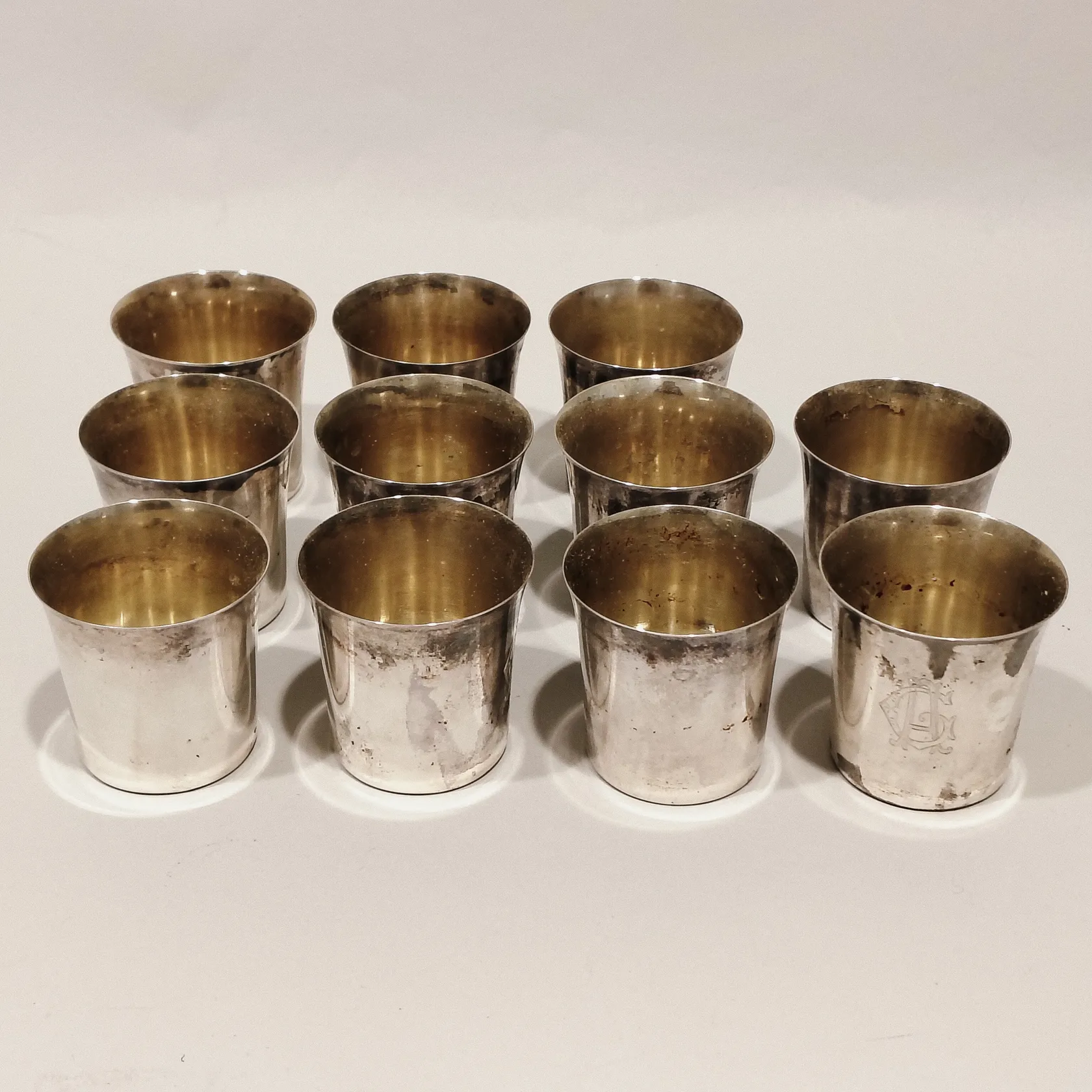 Elva supkoppar, höjd 4,5cm, gravyr, silver 830/1000 Vikt: 312,9 g.