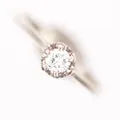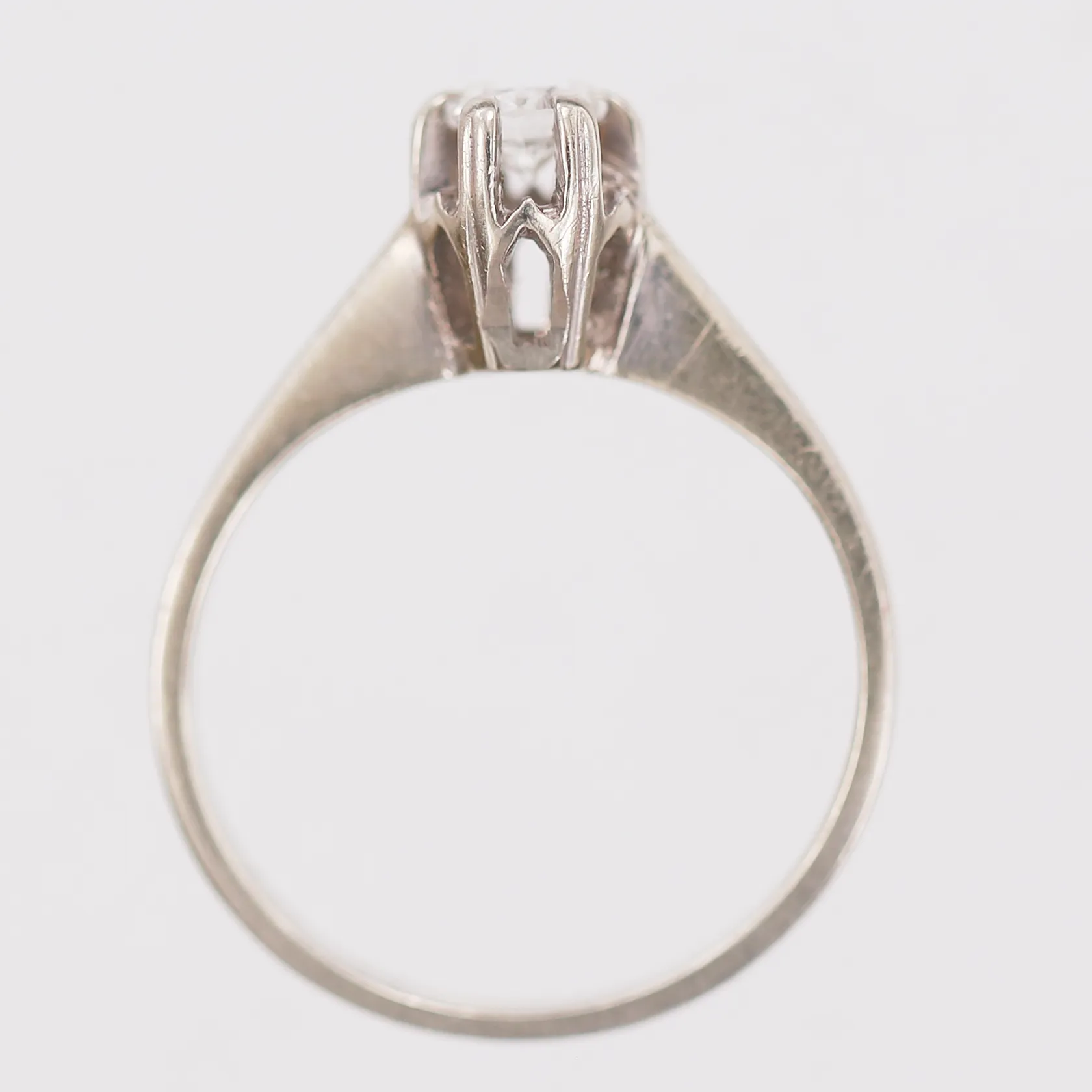 Ring med diamant ca 1x0,16ct, ca TW/VS, stl: 14 ¾, bredd ca 2mm, otydlig svensk importstämpel, 18K vitguld. Vikt: 1,9 g.