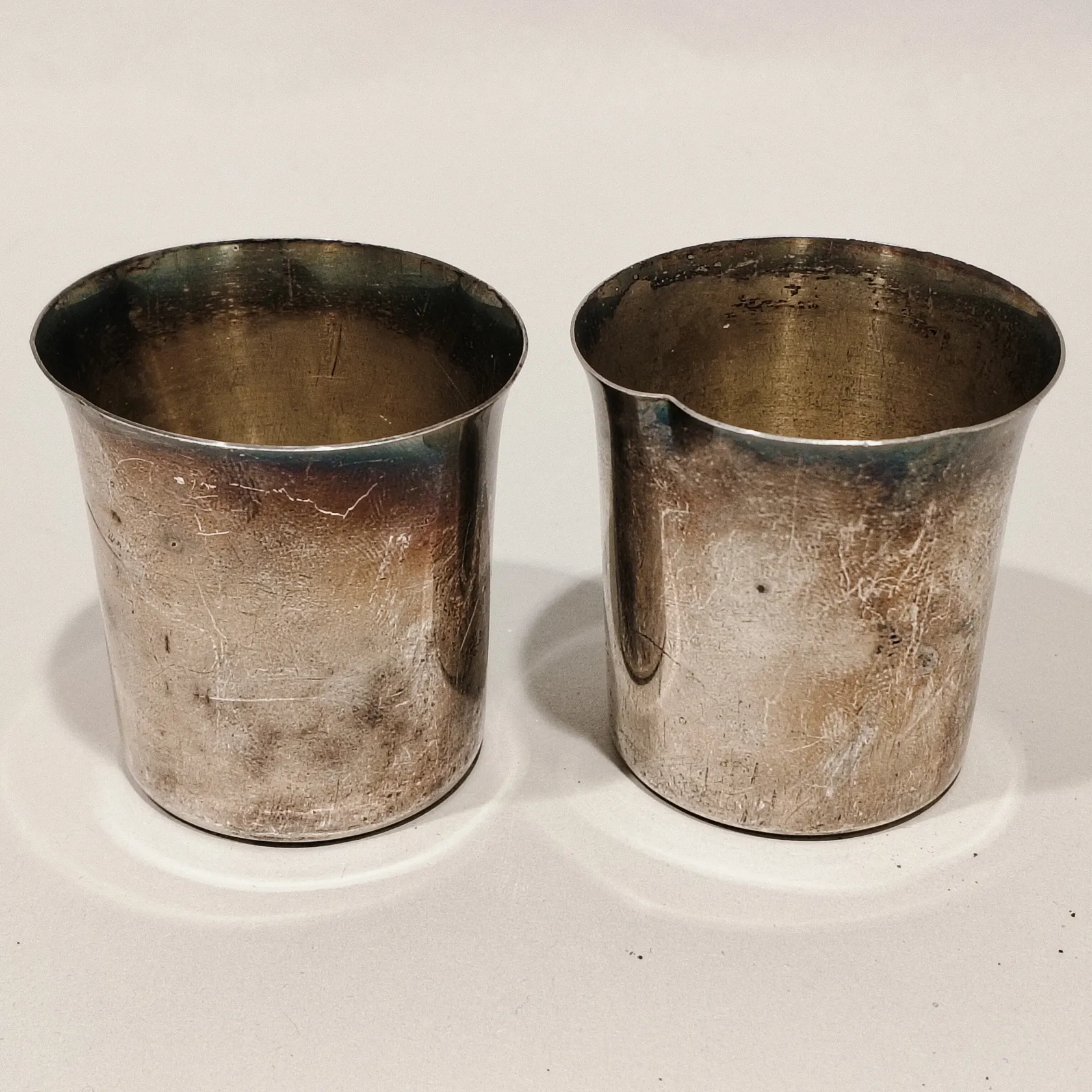 Två supkoppar, defekta, 830/1000 silver Vikt: 45,4 g.