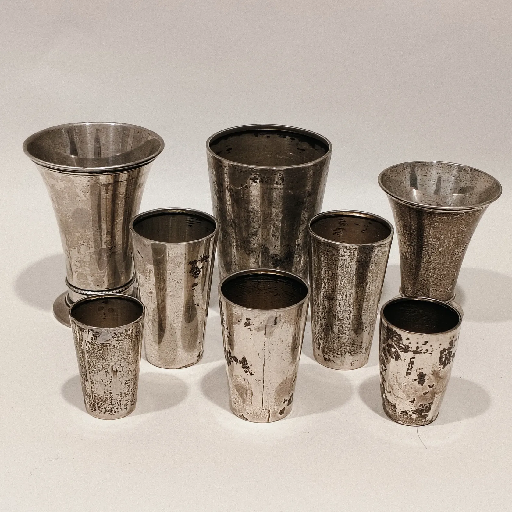Åtta pokaler/bägare, gravyr, silver 830/1000 Vikt: 311,7 g.
