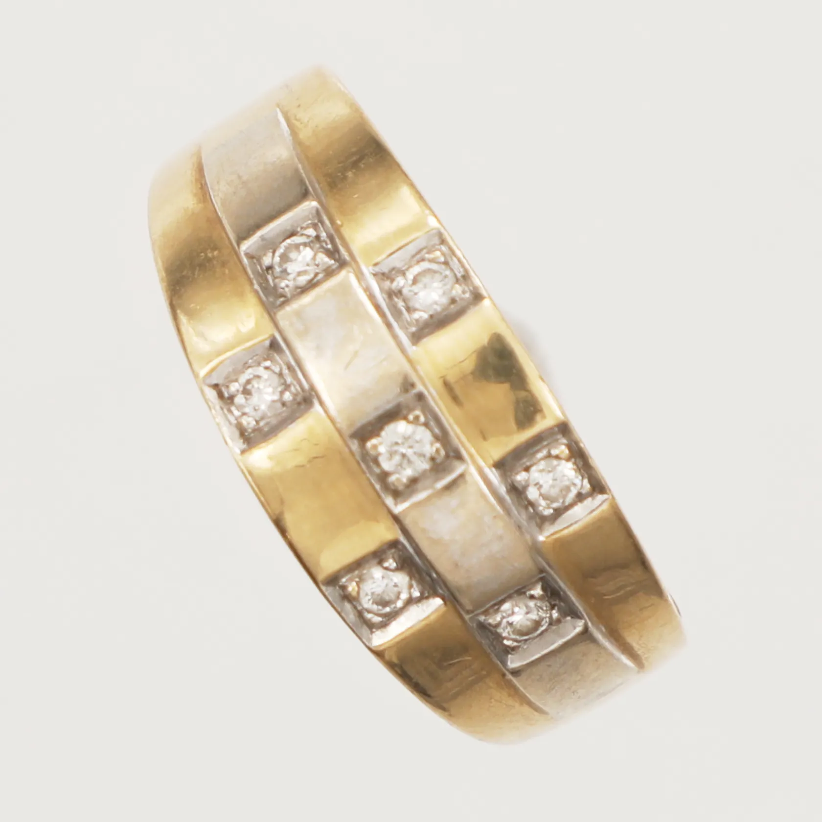 Ring med diamanter, 7xca0,02ct, bredd 3,2-9,3mm, GHA, 18K Vikt: 6,3 g.