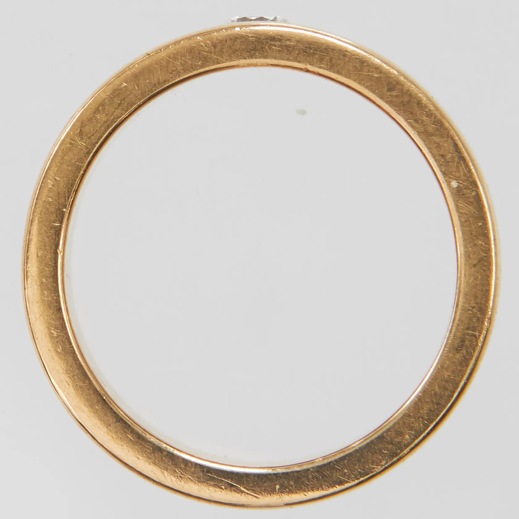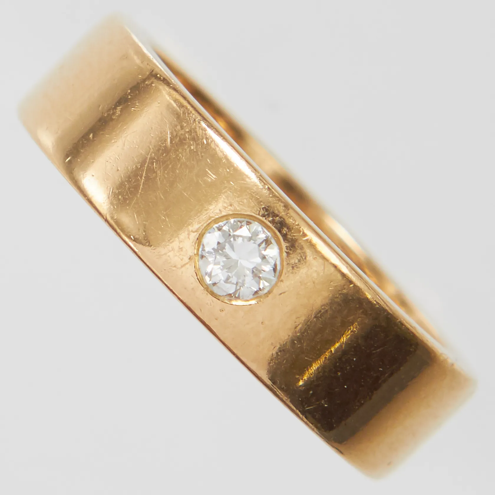 Ring, diamant 1xca0,10ct, Ø16, bredd:5,5mm, nypolerad, Schalins, 18K Vikt: 8,7 g.