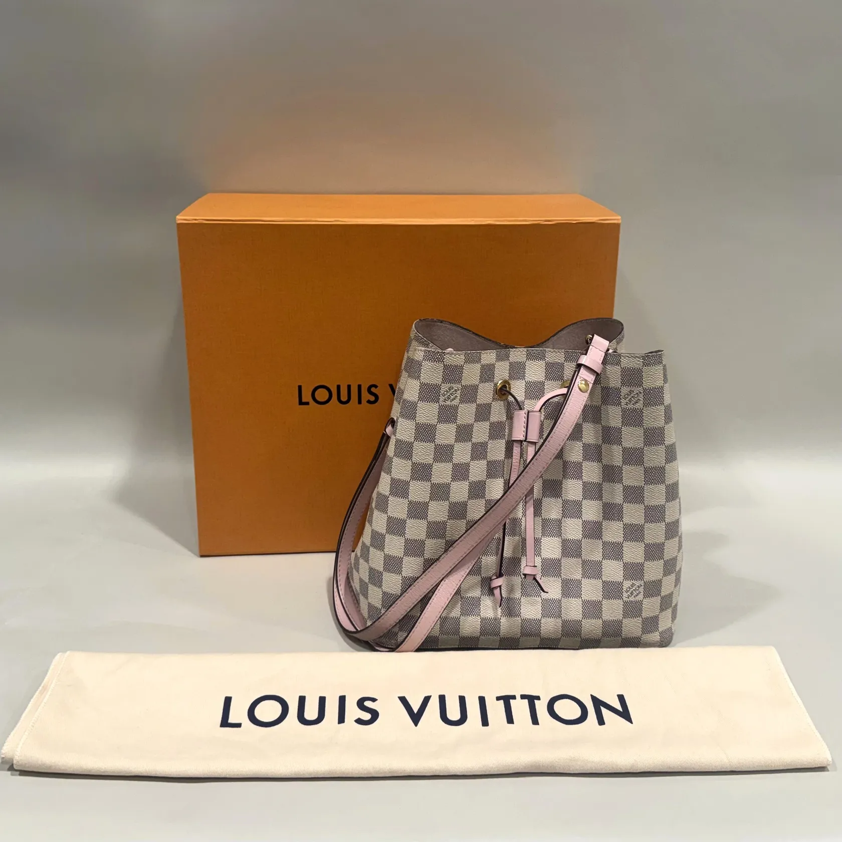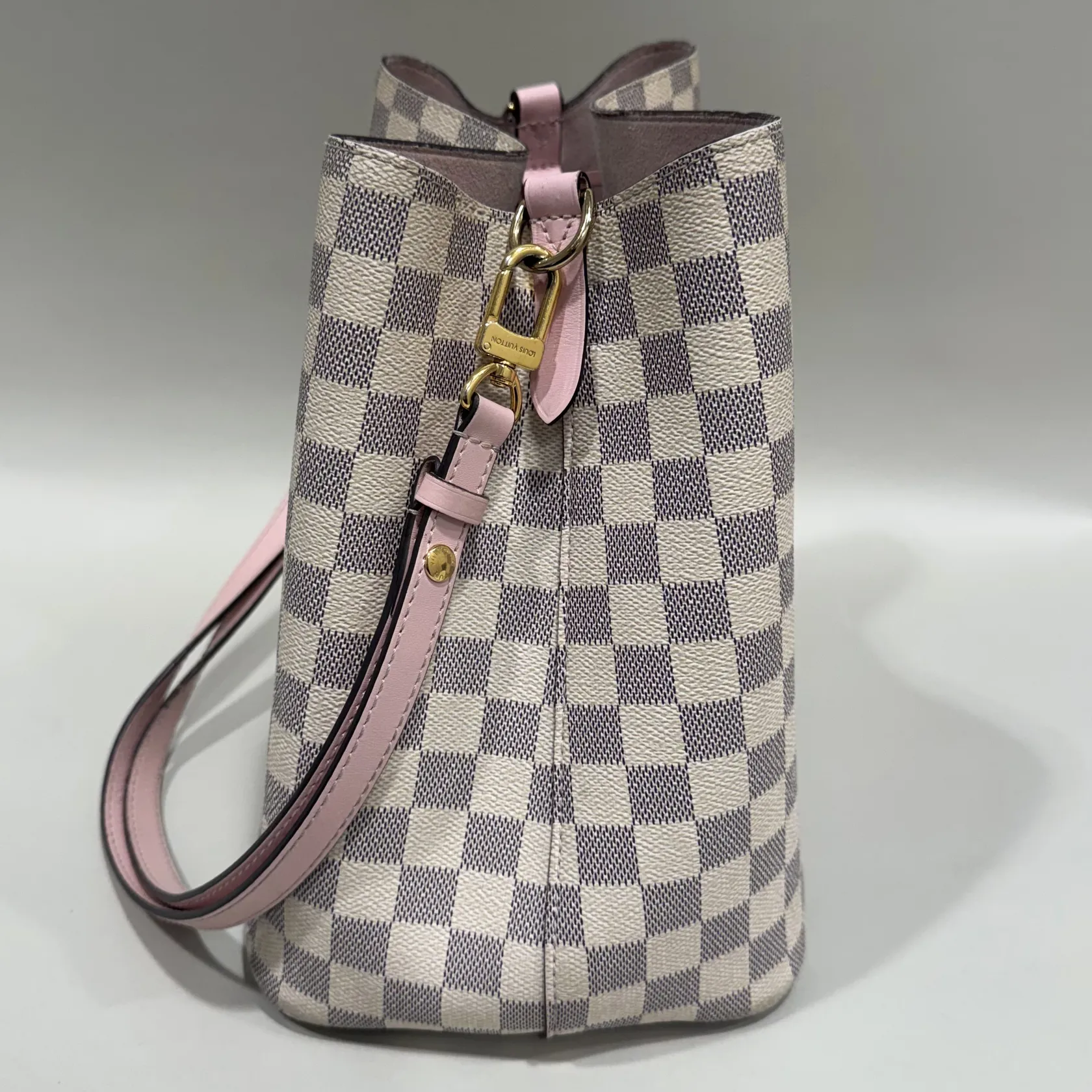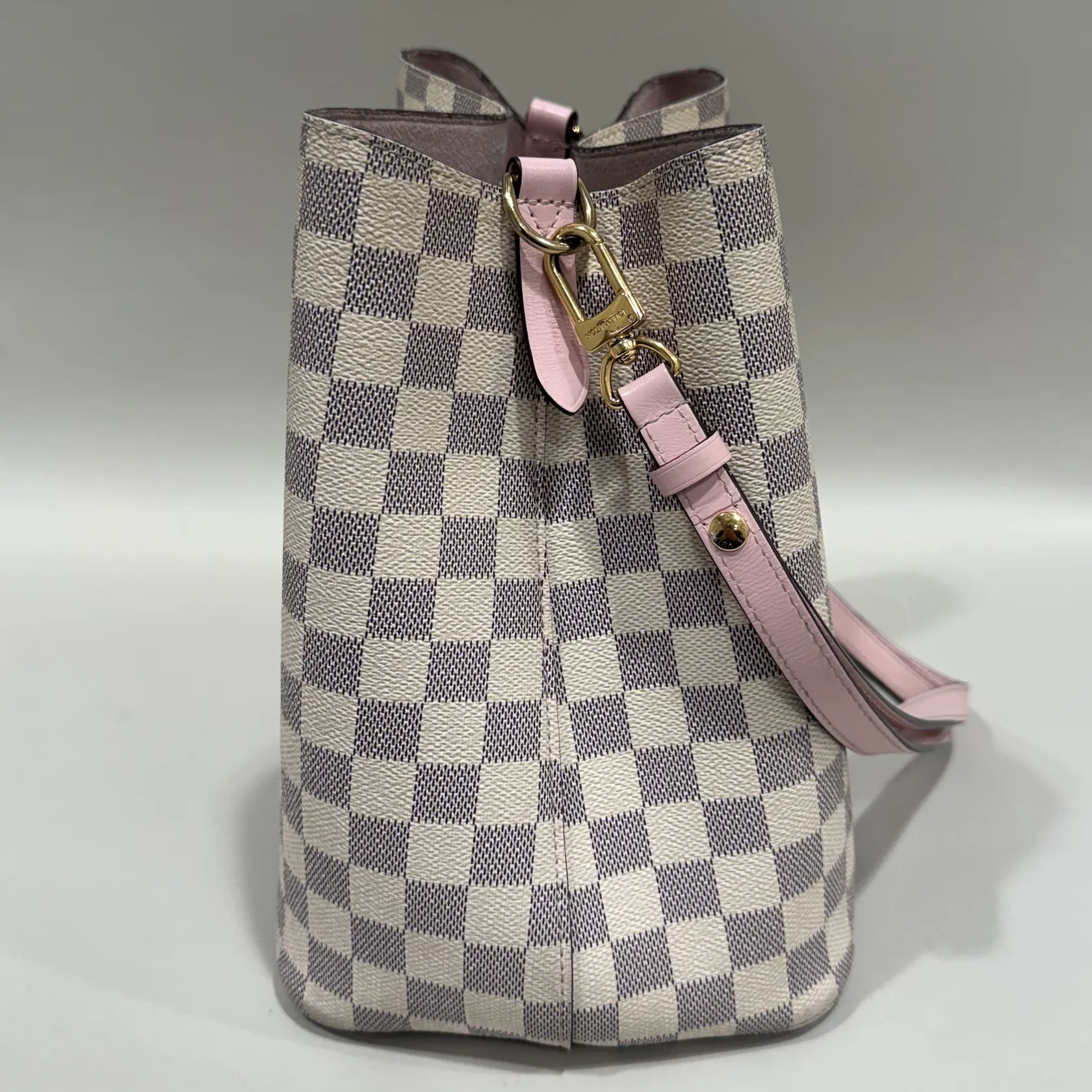 Väska Louis Vuitton NeoNoe Damier Azur Canvas 28x25x17cm, datumkod: SP2139, med tillhörande clutch, beslag i gulmetall, mindre slitage på läderrem, slitage på överkant samt undersida, dustbag, ytterkartong Skickas med postpaket.