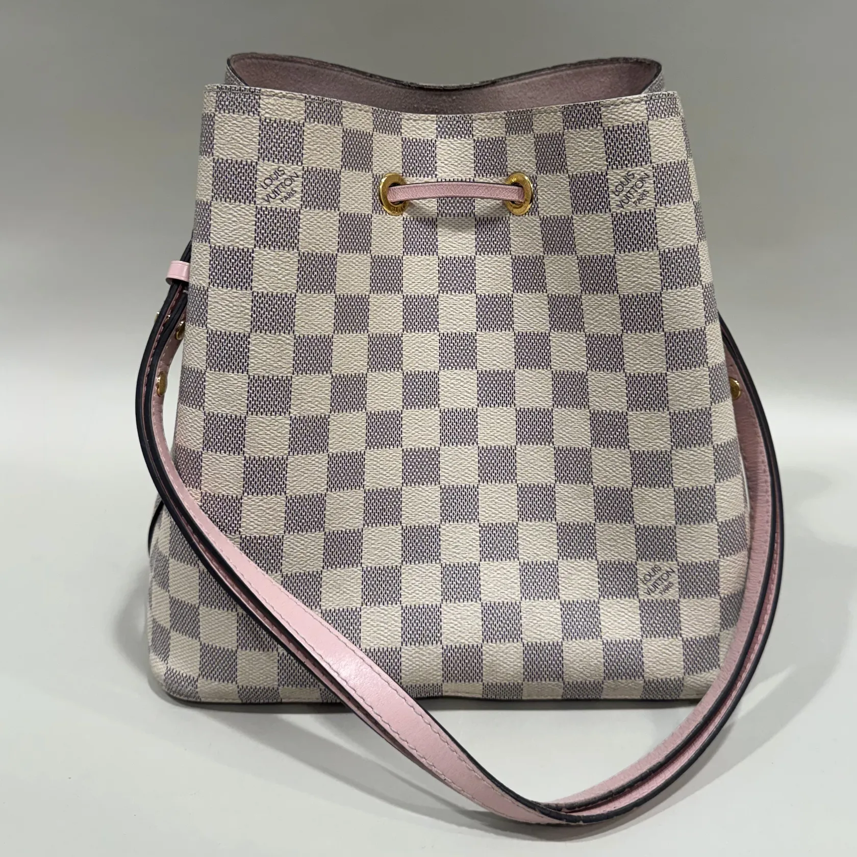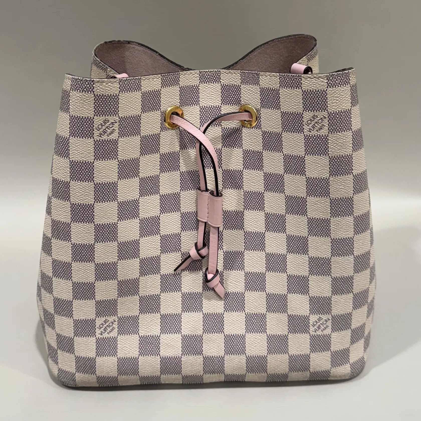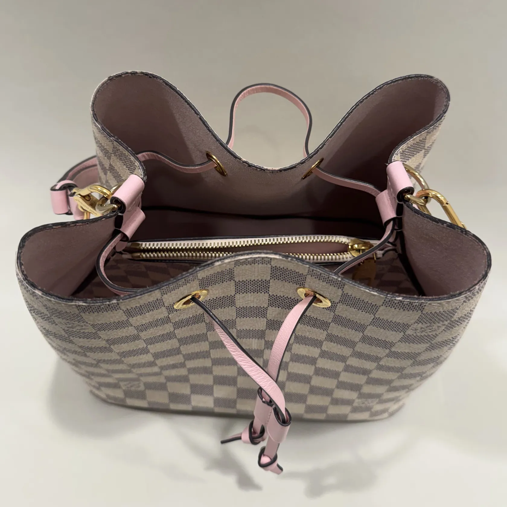 Väska Louis Vuitton NeoNoe Damier Azur Canvas 28x25x17cm, datumkod: SP2139, med tillhörande clutch, beslag i gulmetall, mindre slitage på läderrem, slitage på överkant samt undersida, dustbag, ytterkartong Skickas med postpaket.